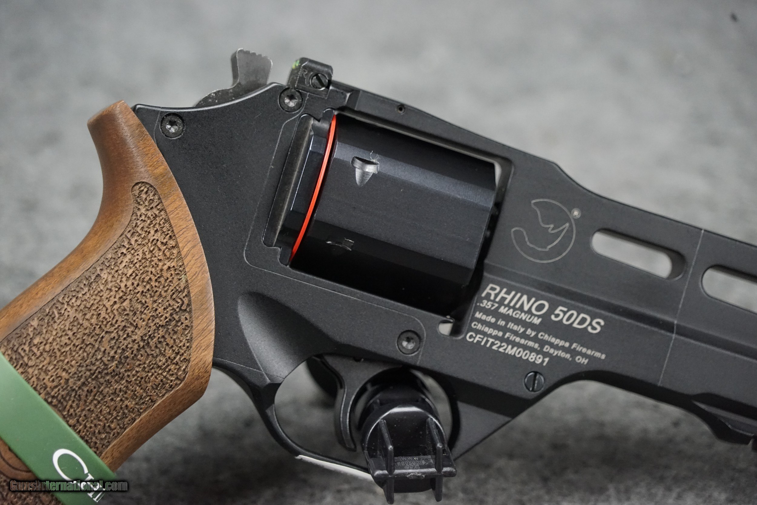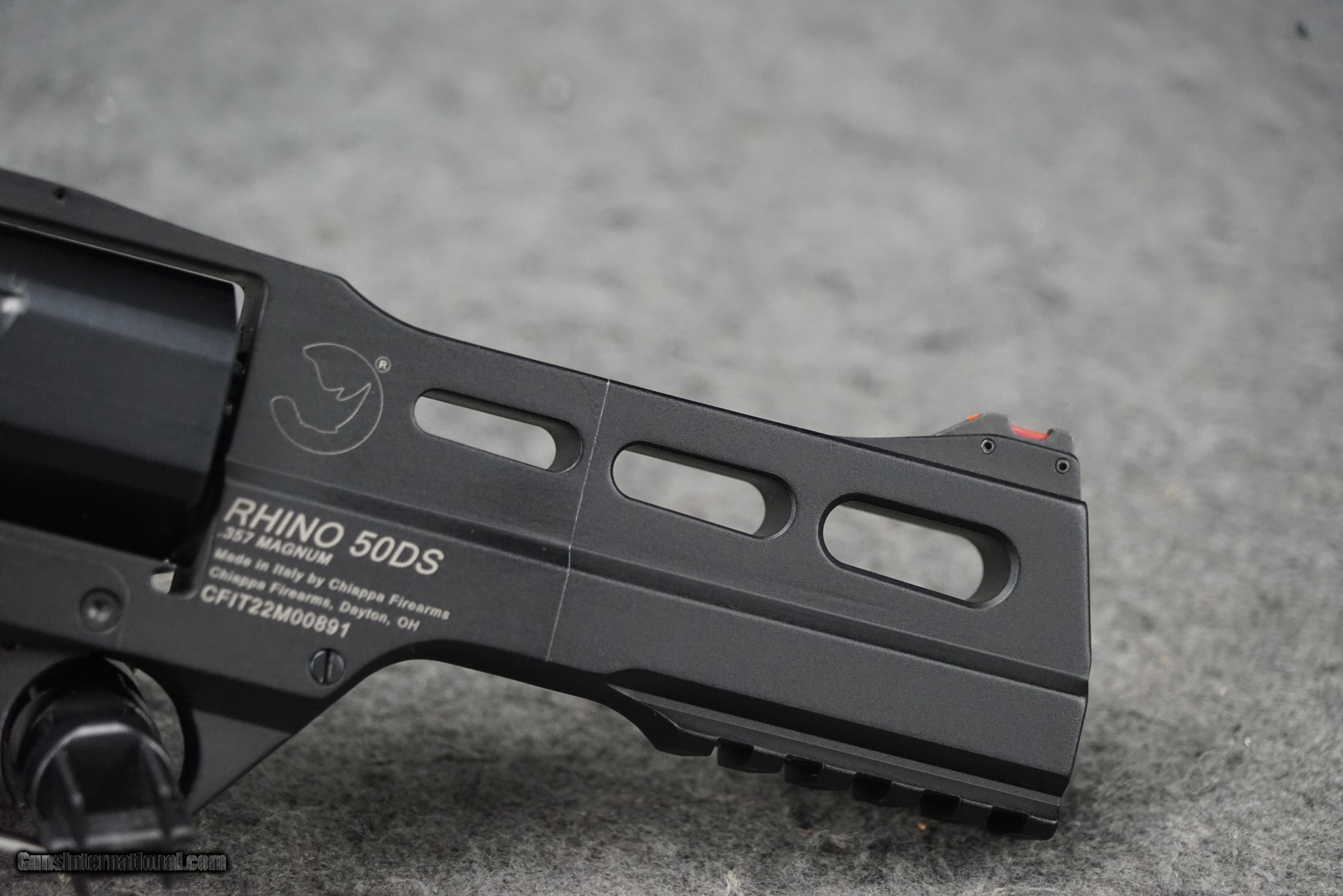Description: The Rhino Revolver is now offered in a Single Action Only version specifically legal for sale in California. (SAR - Single Action Rhino) The Rhino revolver design features a lower bore axis compared to other revolvers. This means the barrel is directly in line with the shooters hand, wrist and arm. This results in almost no muzzle rise and, because energy is better absorbed and controlled by the entire arm, it reduces the amount of recoil felt by the shooter. In addition, the alignment also gives the shooter a more natural point of aim. Shoot it and feel the difference! Type of Gun: Revolver Caliber: 357 Magnum Action: Single Action Only Barrel Length: 5" (127 mm) Capacity: 6 Grips: Medium Walnut Front Sight: Fixed Red Fiber Optic Rear Sight: Adjustable Elevation & Windage Green Fiber Optic Safety: Internal Weight: 1.97 lbs Length: 9.5" (241 mm) Material: Machined 7075-T6 Alloy Frame / Steel Cylinder and Barrel Finish: Black Anodized Extraction: Manual Notes: Includes 3 Moon Clips + Removal Tool SOLD Handgun Caliber: .357 Magnum Manufacturer: Chiappa Model: Rhino 50DS SAR Barrel Length: 5" Barrel Condition: BRAND NEW |