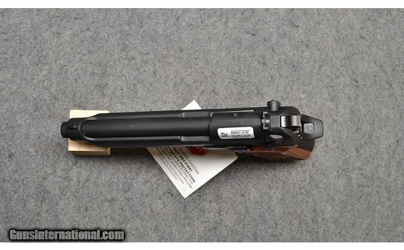 Description: This pistol is a Chiappa M9-22 chambered in .22 Long Rifle. It has a decocking safety, wooden grips, and matte blue finish. This firearm is in good condition overall, but has some scratches and scuffs throughout from display and handling. It comes with a factory case and extra magazine. .22 Long Rifle SOLD Metal Condition: "Good, scratches and scuff from handling and use Wood Condition: "Good, right grip is chipped near the rear of the slide, light scratches throughout Bore Condition: "Bright and shiny, with visible rifling Barrels: 5" Matte blue finish Fore End: Textured wooden grips Weight: 2lbs 6oz Sights: "Blade front sight, notched rear sight Item Location: Wichita, KS |