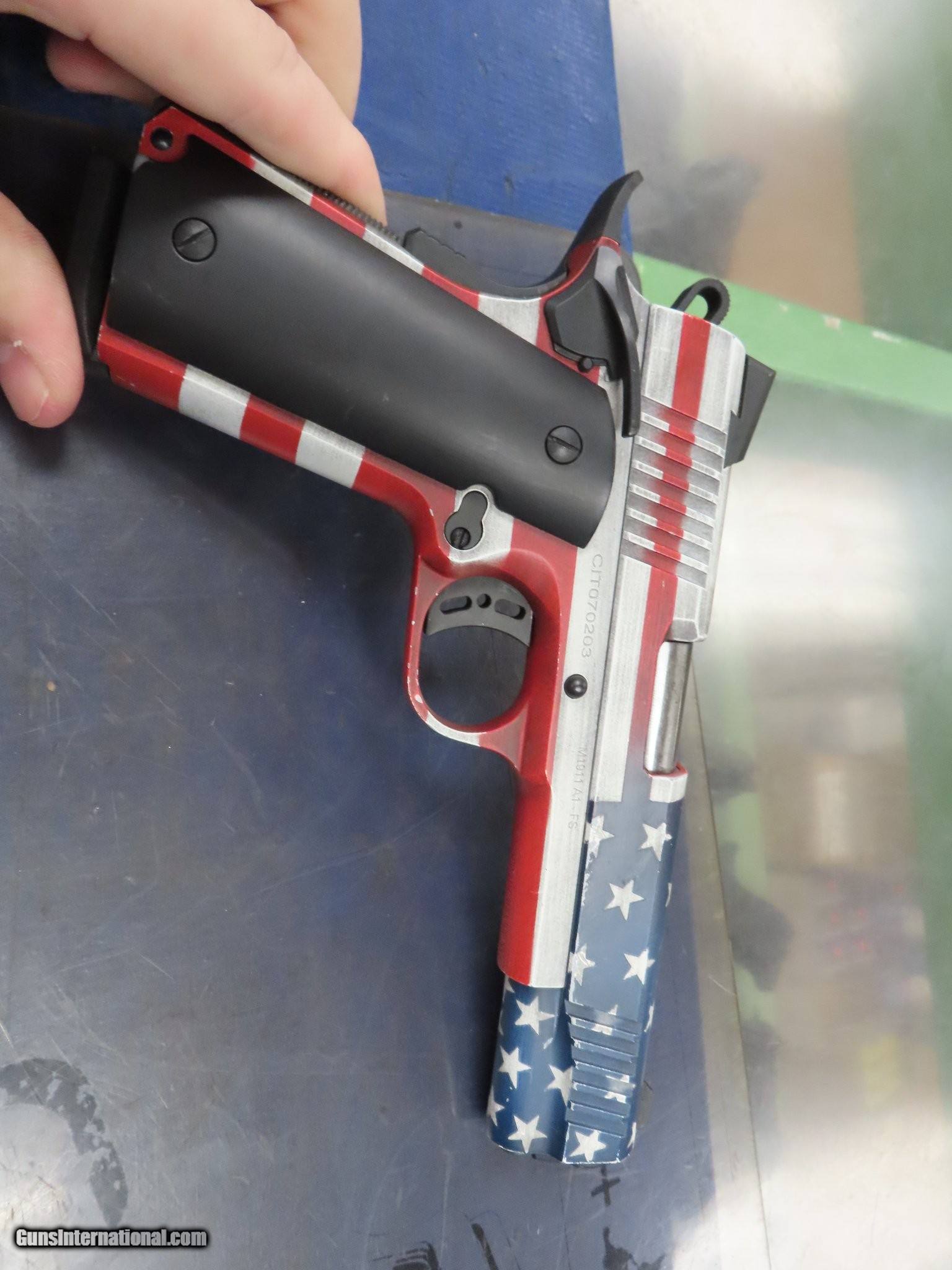 Description: Guns Listing ID: 587193 Citadel 1911 .45 acp American Flag. Gun comes with the original box and 1 mag. In good shape. SOLD Manufacturer: CITADEL Model: 1911 Caliber Info: .45 ACP Condition: Used - Non-Certified Barrels: 5" BARREL Action: SEMI AUTOMATIC Finish: AMERICAN FLAG |