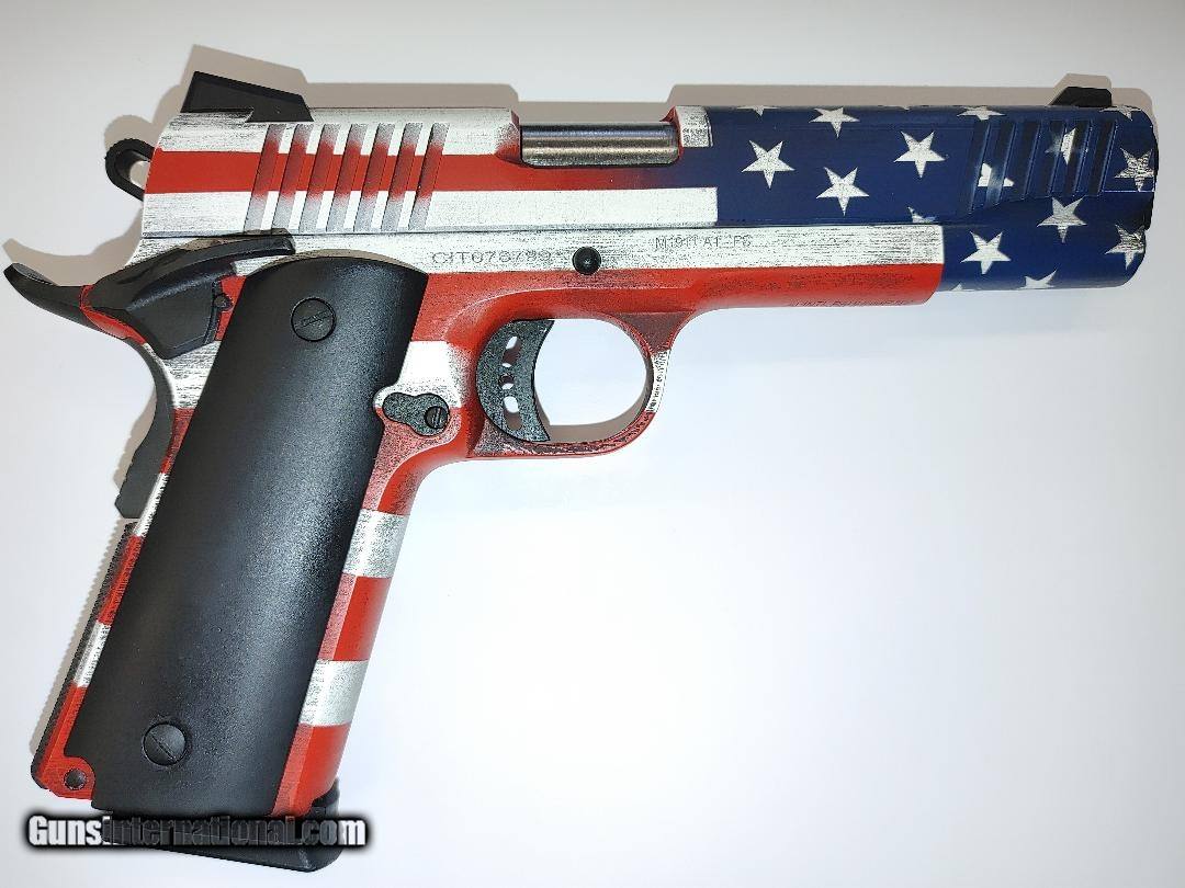 Description: Guns Listing ID: 927020 Citadel 1911-A1 Full Size .45 ACP Semi Auto Pistol 5\" Barrel 8 Rounds Government Profile Black Grips & WOOD GRIPS American Flag Cerakote Finish. 2 MAGS UNFIRED SOLD Manufacturer: CITADEL Model: 1911-A1 Caliber Info: .45 ACP Condition: Used - Non-Certified Barrels: 5 BARREL Finish: AMERICAN FLAG |