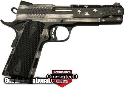 Description: Guns Listing ID: 1229303 Citadel 1911A1 features a Series 70 firing system forged steel frame and slide with an extended slide stop skeletonized hammer and trigger. It utilizes lowered and flared ejection port beveled magazine well and an extended ambidextrous thumb and beavertail grip safety. The full size model has a 5 barrel with a full size guide rod and comes with two 8round magazines. This 45ACP model has a grayscale American Flag cerakote metal finish with black G10 grips.\ SOLD Manufacturer: CITADEL Model: 1911-A1 Caliber Info: .45 ACP Condition: new Barrels: 5 BARREL Finish: AMERICAN FLAG |
