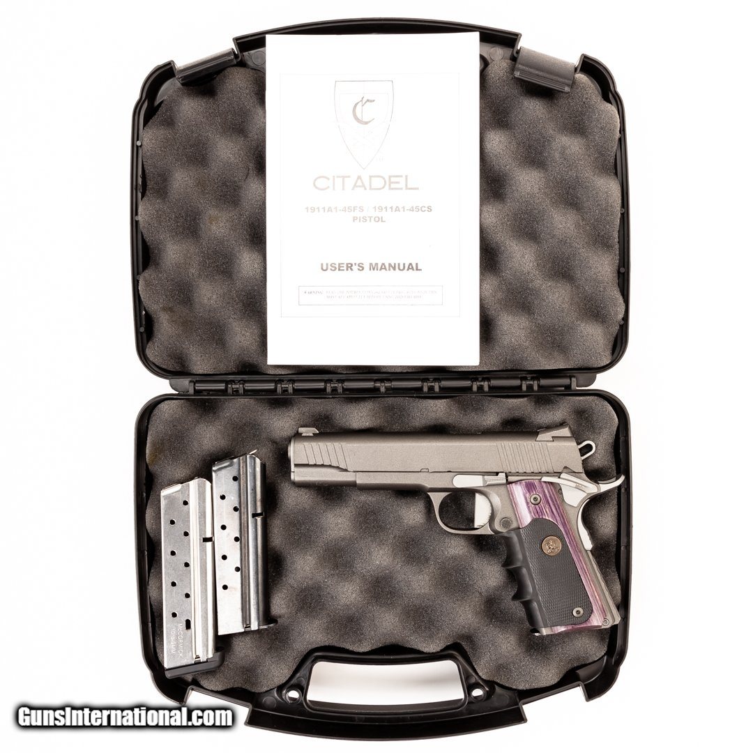 Description: Guns Listing ID: 1343441 The original hard case, manual, two 8-round magazines, and one 10-round magazine are included. Get the best bang for your buck when you get a Certified Used Firearm . When you see the Certified Used stamp on any of our firearms, you can be confident that you‚‚re getting exactly what you want – a gun only in very good to excellent condition and held to the highest quality standard. All Certified Used Guns come with a ‚‚no questions asked‚‚ return policy . PLUS, ALL CERTIFIED USED GUNS SHIP FR SOLD Manufacturer: CITADEL Model: M1911-A1 FS Caliber Info: 9MM LUGER (9X19 PARA) Condition: Used - Non-Certified Barrels: 5 BARREL Finish: GREY CERAKOTE |