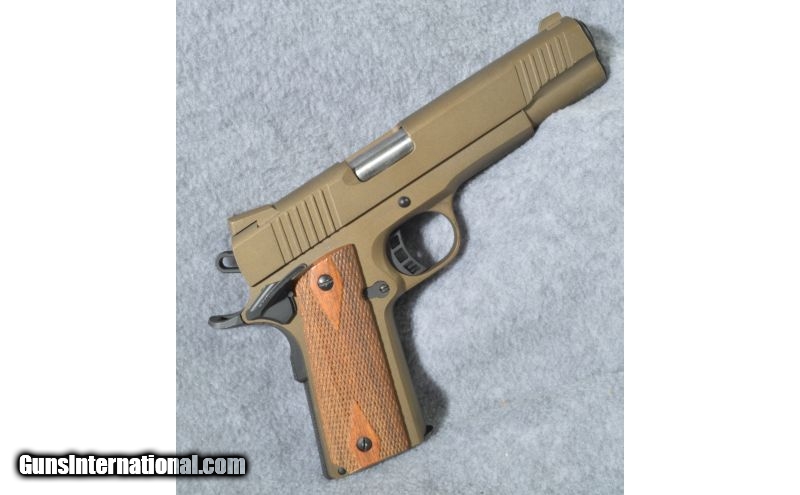 Description: Factory New Citadel M1911A1 full size in Bronze, factory blemish to finish , with case SOLD Caliber Info: 9mm Chambers: Semi Auto 8+1 Metal Condition: As New, Factory finish blem Wood Condition: As New Bore Condition: bright Barrels: 5 inch Triggers: Single Action w/ Skeleton trigger Stock: Checkered hardwood Weight: 4 lbs Sights: Blade front notched rear combat style Extras: factory blem on finish, new firearmbox included Item Location: Short Pump, VA |