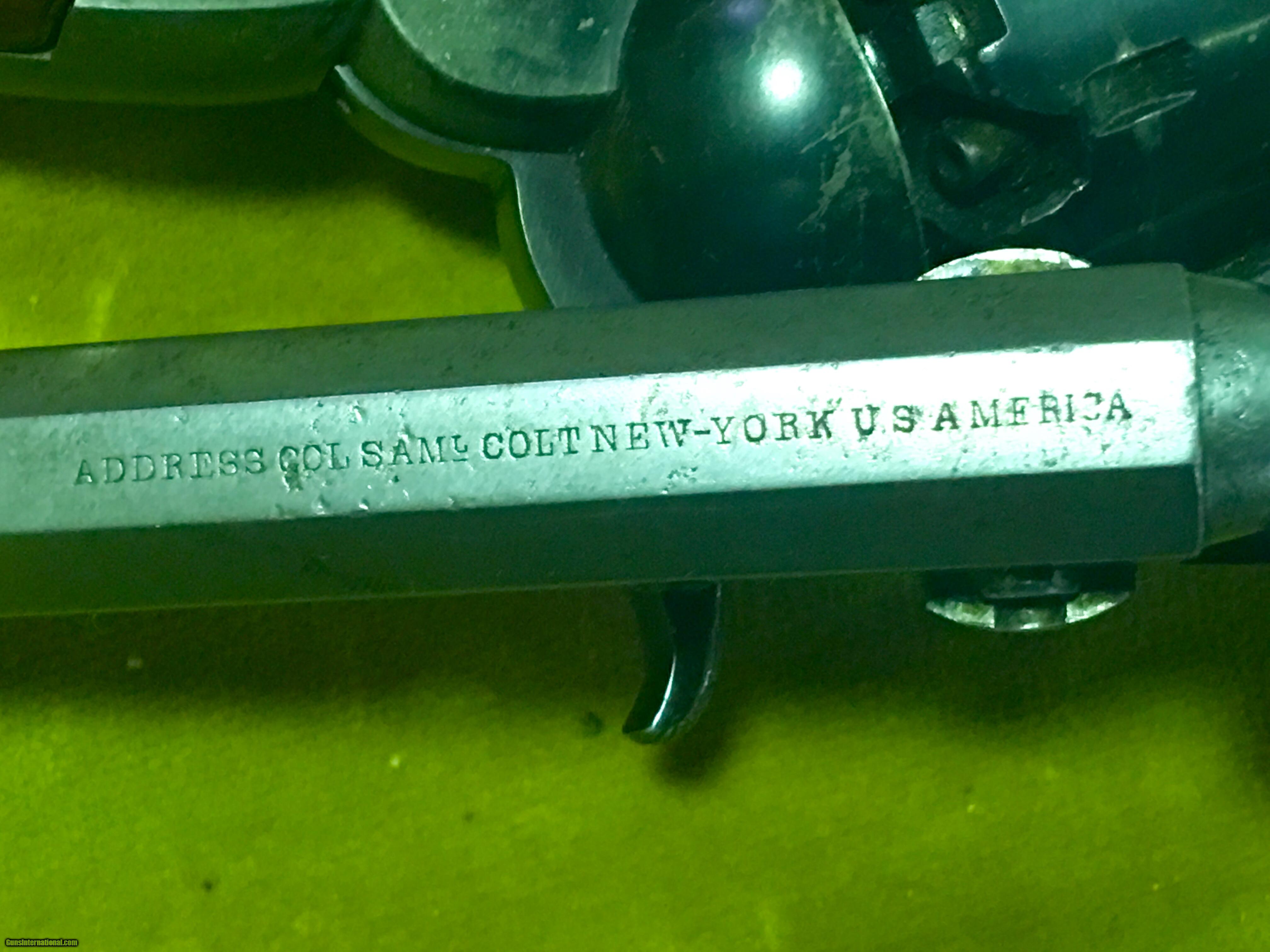 Description: let me start by stating I'm selling this gun for an old collector. Taken out of attic I know very little about guns. Look at the pictures for your own determination of the condition or what exactly it is. All different numbers. Action works. Call 716-553-5314. For any questions. My name is Max SOLD Antique: Yes Manufacturer: Colt |