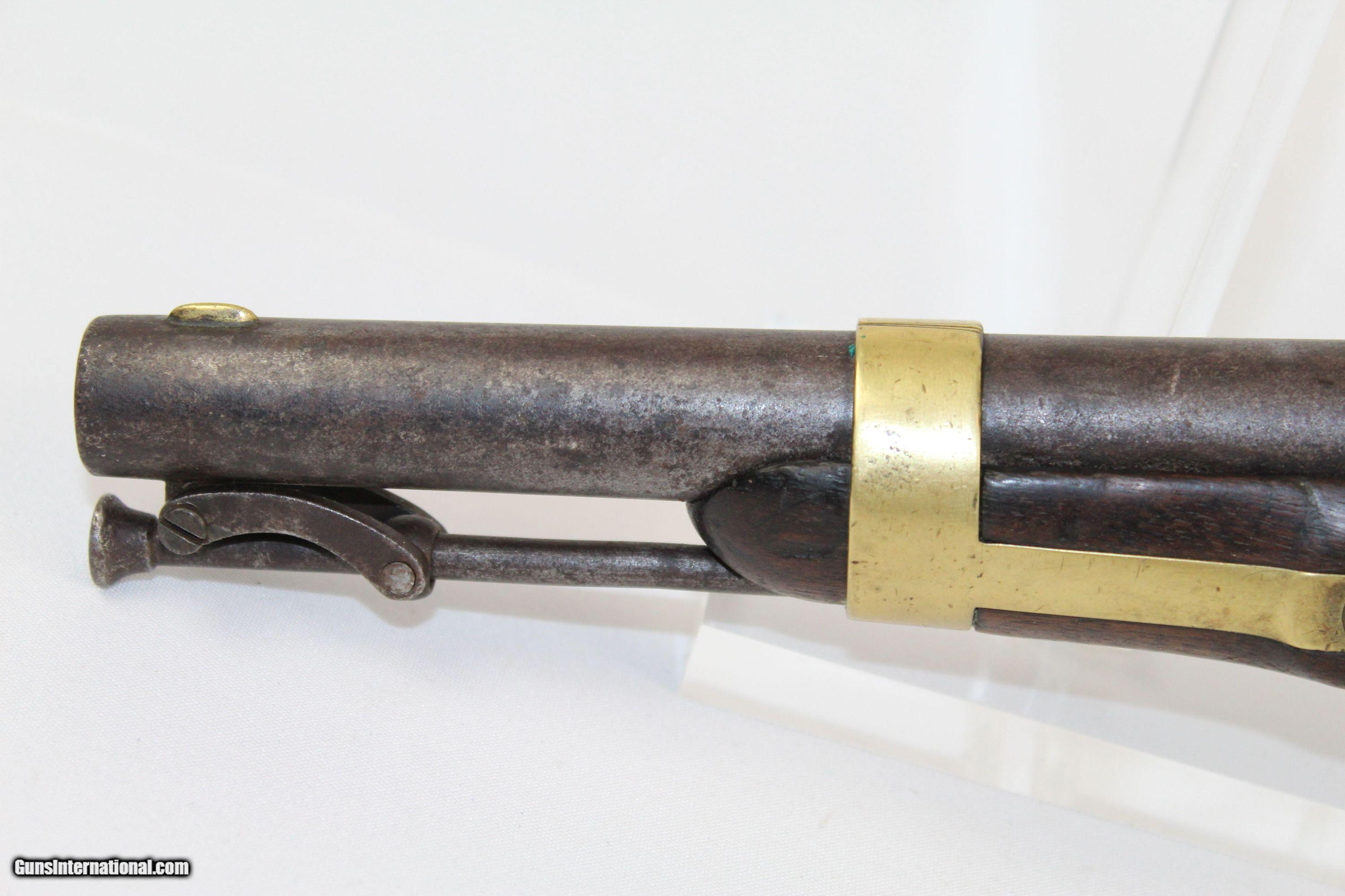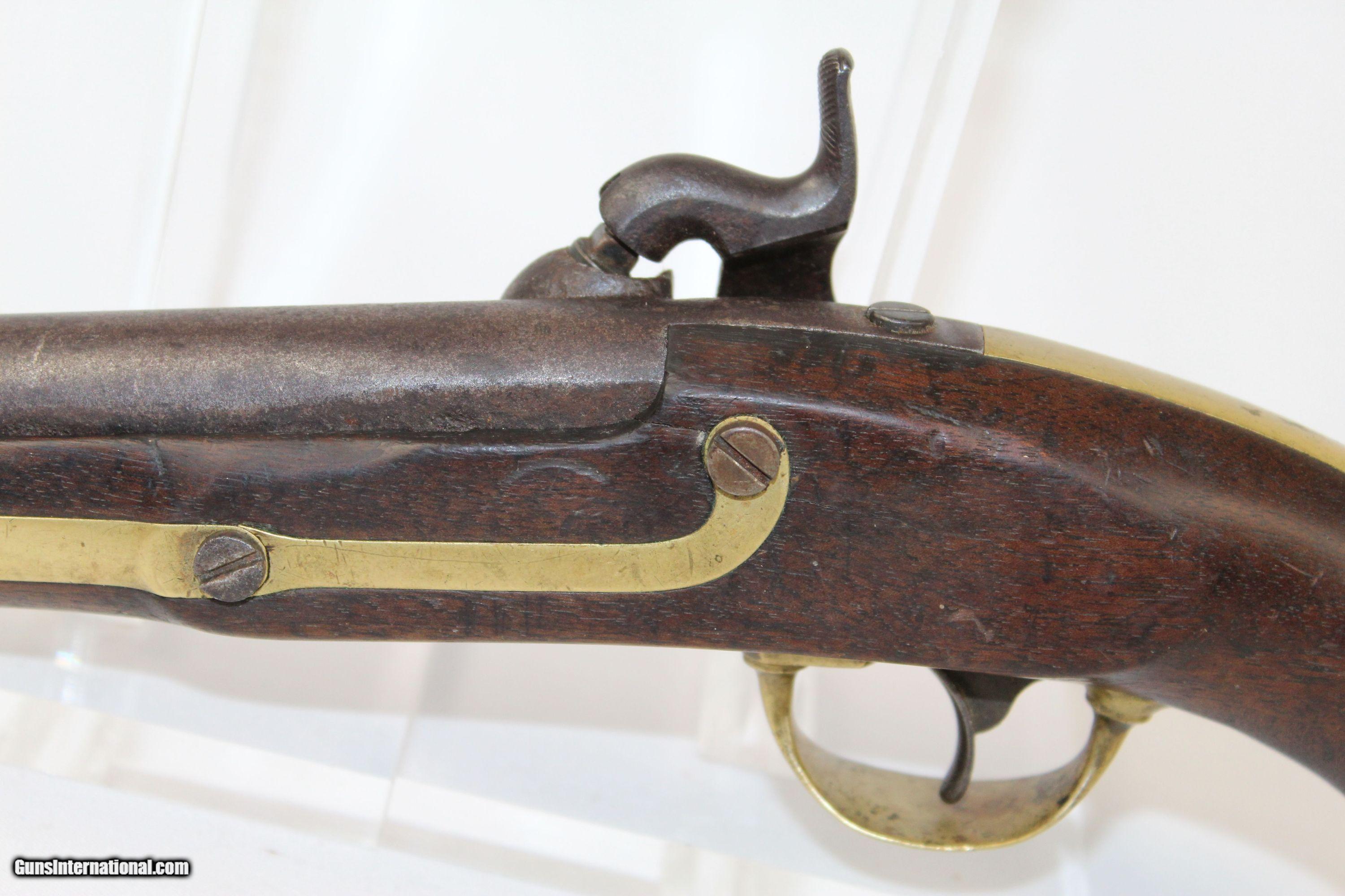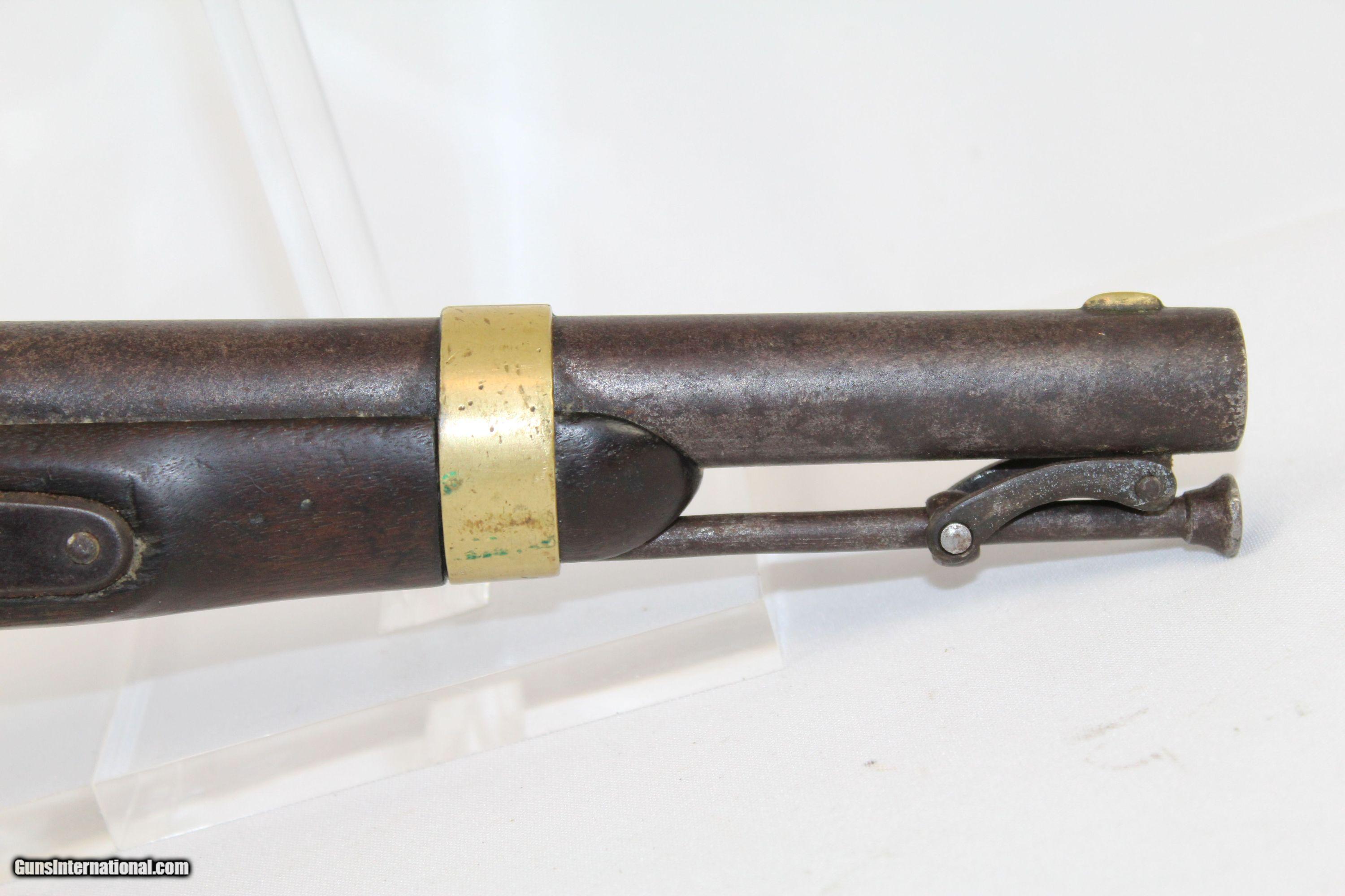 Description: Antique ASTON U.S. Model 1842 DRAGOON’S Pistol 1850 Antebellum Horse Pistol Used During the Civil War! Here we present an antique Henry Aston U.S. Model 1842 Percussion Pistol, made in 1850, in Middletown, Connecticut. The Model 1842 saw service during a time of great change and increasing tension, as well as firearms innovation. The Mexican-American War (1846-1848), the numerous conflicts with Native Americans, annexing of new territory, the rising blood-pressure over slavery, and a quick 36% population increase that all culminated in the blood-letting of the American Civil War. This was the first official percussion pistol to be adopted by the U.S. and simultaneously the last large smooth bore single shot pistol. By 1845 it was the primary issued weapon to the First and Second Regiment of Dragoons, replacing many of their Model 1836 flintlocks, just in time for the Mexican-American War. The 1842 features sturdy construction with lots of brass for support. This was important during a time when one would expend their shots and still have a fight on their hands. Striking your opponent with the pommel of your gun was quite effective. The ramrod is captive, so that it would not be lost in the heat of battle on top of a horse. Many of these were used, especially initially, by both sides during the American Civil War. This specimen is marked “US/H.ASTON” and “MIDDTN/CONN./1847” on the lock. The left side of the barrel is marked “US/JH/P”. The overall condition is very good. The iron features a deep patina. The brass bears a mild patina. The markings are clear. The walnut stock shows the usual handling marks of a Civil War-era military pistol and is solid. The bore is smooth and in very good condition. The action is strong. A great Dragoon’s pistol! Own the original! This is a legitimate antique and not a reproduction. Barrel is 8-1/2 inches. Caliber: .54 Percussion Overall condition as seen in photos. Very Fast. Very Safe. FREE SHIPPING WORLDWIDE. Delivered directly to your door by express mail! Guaranteed AUTHENTIC & Includes CERTIFICATE OF AUTHENTICITY. ancestryguns $1500 #5505 SOLD Antique: Yes |