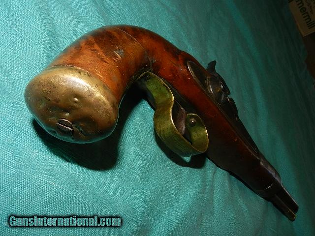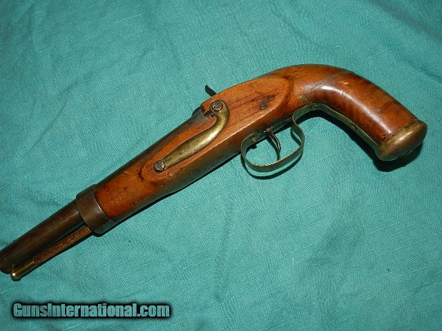 Description: Another Civil War ers pistol of about .55 cal with a 8 1/2" round barrel for about a .55 cal ball. The Metal is grey and has no markings but the barrel and lock-plate look like a Johnson of Middletown. The action cocks and works well.The hard-wood stock looks like a tiger maple, and comes with a more recent wood ram-rod and brass tip. these guns were put together by the south for the Civil War, as any type gun has in high demand. Has a brass butt-cap, side plate and flat sheet brass trigger guard. This gun would make a fine display piece for Civil war artifacts. We don’t have asite .I prefer money orders or a check. Item ships when funds come in. If you can only pay with a card let me know. I’m sorry I don’t list my phone number, did that for 30 days, never again.. I can’t talk on the phone all day…who will ship the guns? I’m just one person, and it’s very bust here! I do a brisk volume! I hope you like my wide selection of unusual guns, knives and gun parts. Shipping price determined by zip code. I try to keep the prices affordable, which means I make less money than most dealers. You won’t get altitude sickness with my prices! I consistently have the best selection of older guns If you BUY IT NOW you must still contact us for details buy it now doesn't end the sale, it just sends an email telling us you want to buy this gun. A phone call won’t secure a sale! Not home many times, the first buyer by email buys the gun !Thissite doesnot close down a sale when you do a BUY IT NOW like Ebay!I can get six buy it nows in an hour, first buyer to email gets the guns, others are in second place! Best to send another email . Sometimes not home to get calls. Some guns are required shipment to a gun dealer near you for a transfer to you when it arrives. With the widest selection of older guns at great prices, We don’t have a store, and sell on the internet only. SOLD Antique: Yes |