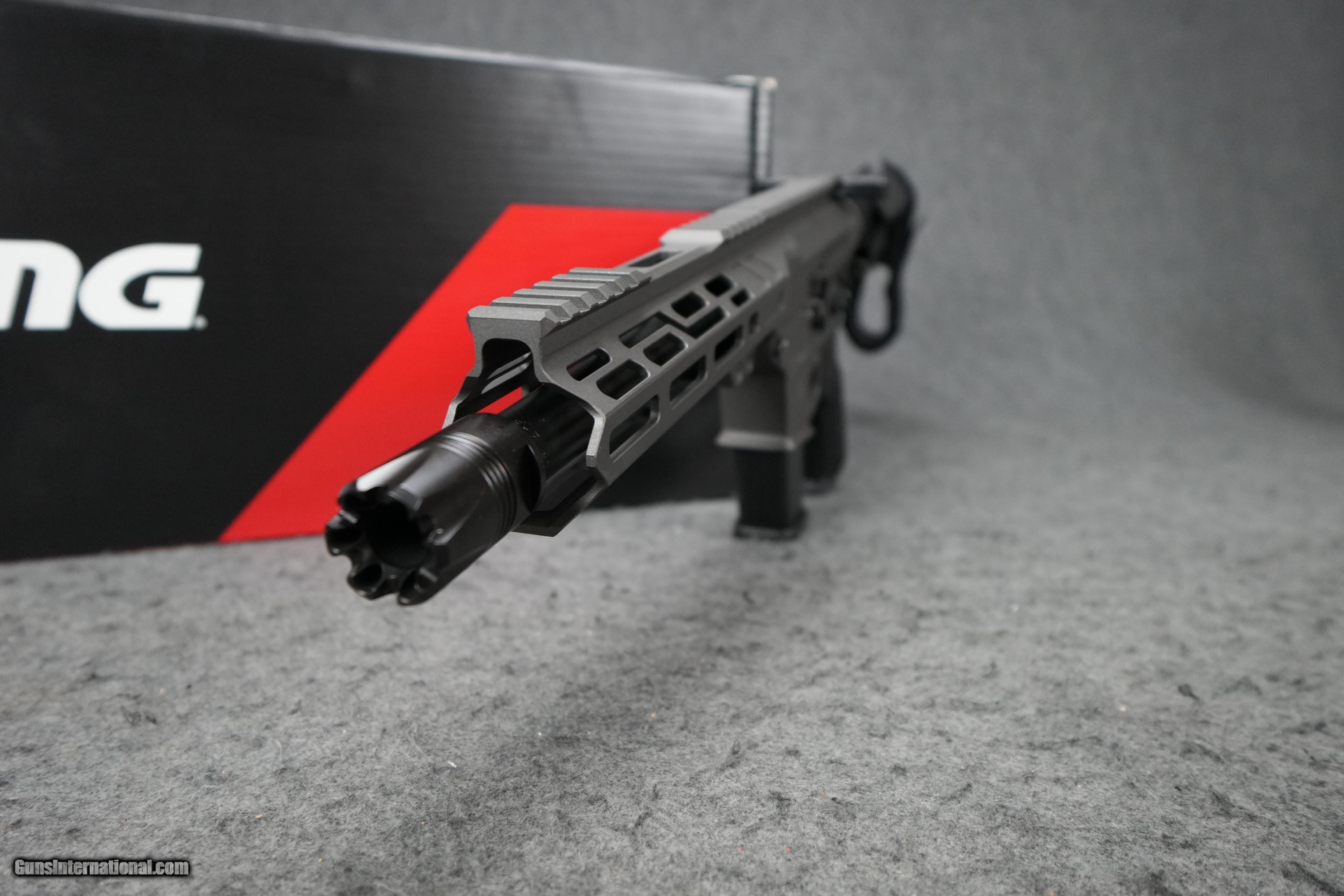 Description: Here it is, a CMMG BANSHEE in the caliber that won two World Wars and inspired the creation of the Radial Delayed Blowback system. Like all of our .45 ACP pistols and rifles, this BANSHEE is built on the MkG platform and is designed to use Glock-pattern .45 ACP magazines. Available in a variety of cerakote finish options, the BANSHEE series represents the most innovative AR pistols and SBRs available today. From the quick deploying RIPBRACE, to the stylized receivers and EML handguards, every BANSHEE is tailor-made to be the personal defense weapon you can always depend on. With full length M-LOK slots on both sides and the bottom of the handguard as well as M-LOK between the top picatinny rail sections, you’ll always have enough space for those must have accessories. MkG Radial Delayed Blowback Operating System Since making its debut on the original .45 ACP MkG platform in 2017, Radial Delayed Blowback has revolutionized pistol caliber ARs across the entire CMMG lineup. As a result of meticulous engineering, Radial Delayed Blowback not only addressed some operational concerns with a traditional straight blowback system, but it also delivered pistol caliber carbines and personal-defense weapons with softer recoil impulses and lighter weight bolt carrier groups and buffer systems than straight blowback systems could deliver. SOLD Handgun Caliber: .45 ACP (.45 Auto) Manufacturer: CMMG Model: BANSHEE MKG Barrel Length: 8" BARREL |