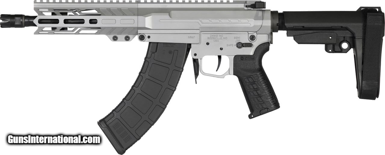 Description: Guns Listing ID: 361479 Get ready to make some noise, with an 8\" barrel this fun size Mk47 BANSHEE is the shortest and lightest 7.62x39mm pistol we have to offer. Torture tested like no other, the Mk47 platform is CMMG‚‚s mid-size AR platform and accepts AK47-pattern magazines to avoid feeding issues commonly associated with 7.62x39mm in AR magazines, as well as incorporating beefier components like our PowerBolt Technology without adding unnecessary weight and bulk. Available in a variety of cerakote finish options, the BANSHEE series represents the most innovative AR pistols. From the quick deploying RIPBRACE, to the stylized receivers and EML handguards, every BANSHEE is tailor-made to be the personal defense weapon you can always depend on. With full length M-LOK slots on both sides and the bottom of the handguard as well as M-LOK between the top picatinny rail sections, you‚‚ll always have enough space for those must have accessories. Mk47 ZEROED parts and accessories – Quality comes standard The AR platform is well known for its capability for customization, and the Mk47 is no exception, but picking the right parts doesn‚‚t have to be a nightmare of homework. Everything from the RIPBRACE to the full kit of ZEROED parts and accessories are made here in the USA with quality and attention to detail that is second to none and each Mk47 BANSHEE comes equipped with a slew of ZEROED parts standard, including: ZEROED Pistol Grip ZEROED Drop-In Trigger ZEROED 60°/90° Ambi Safety ZEROED Mk47 Ambi Charging Handle ZEROED AR15 Polymer Dust Cover ZEROED Linear Compensa SOLD Manufacturer: CMMG Model: BANSHEE MK47 Caliber Info: 7.62X39MM Condition: new Barrels: 8 BARREL Action: DIRECT IMPINGEMENT Finish: TITANIUM-CERAKOTE Weight: 6 lbs. |