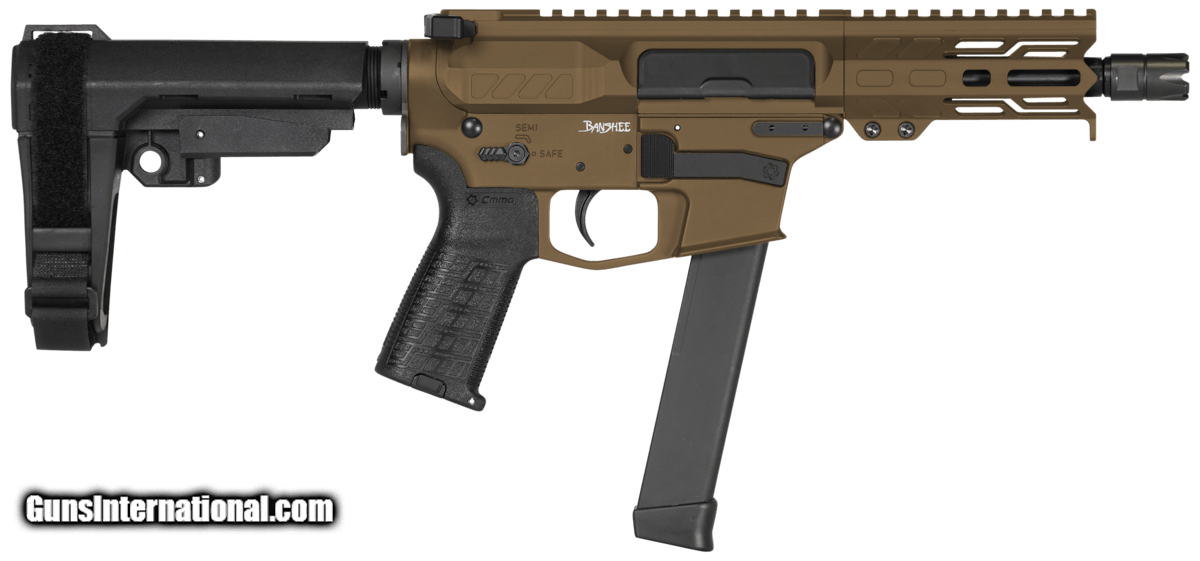 Description: Guns Listing ID: 487848 Built with a 5 nitride-finished barrel this BANSHEE chambered in 9mm is among the shortest, most compact ARs CMMG has to offer. Capitalizing on our reputation for innovation, the MkGs platform uses the always popular 9mm double stack Glock-pattern magazines. Available in a range of cerakote finishes, the BANSHEE series represents the most innovative AR pistols and SBRs available today. From the quick deploying RIPBRACE, to the stylized receivers and EML handguards, every BANSHEE is tailor-made to be the personal defense weapon you can always depend on. New EML4 handguards feature M-LOK slots at 3, 6, & 9 o‚‚clock positions and a full length picatinny top rail for accessories as well as an integrated handstop SOLD Manufacturer: CMMG Model: BANSHEE MKGS Caliber Info: 9 MM LUGER Condition: new Barrels: 5" barrel Finish: MIDNIGHT BRONZE |
