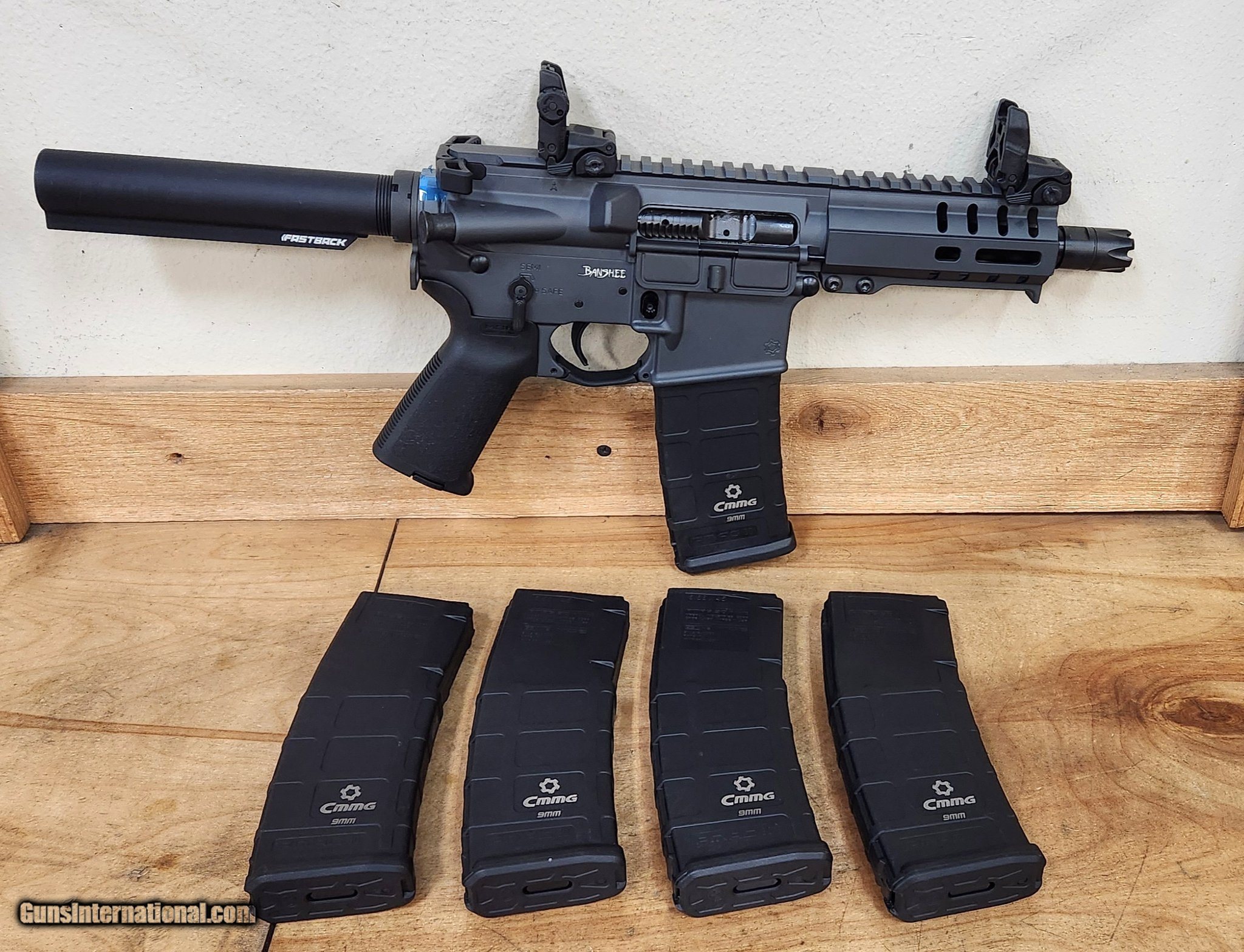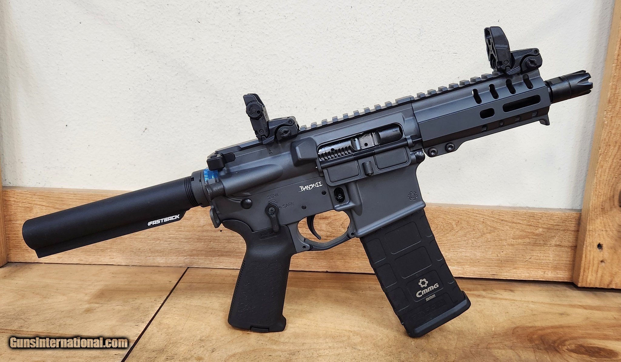 Description: Guns Listing ID: 499779 The unique CMMG MK4 Banshee 9mm, features a delayed blowback system that utilizes AR 15 style 30rd magazines. This one has the linear compensator installed as well as Magpul MBUS sights. It comes as pictured with 5 magazines and no factory box. It is in great condition. The previous owner claims he never fired it but we have no way of knowing for sure. It doesn‚‚t look like it‚‚s been fired much, if at all, after leaving the factory. It does have a couple of minor imperfections from handling but nothing that takes away from the overall package. It is ready for either an arm brace as is or buttstock (NFA rules apply) if you want to do a form 1 SBR registry. Buttstock and/or arm brace sold separately SOLD Manufacturer: CMMG Model: MK4 BANSHEE Caliber Info: 9MM LUGER (9x19 PARA) Condition: Used - Non-Certified Barrels: 5 Action: SEMI AUTOMATIC Finish: black and grey |