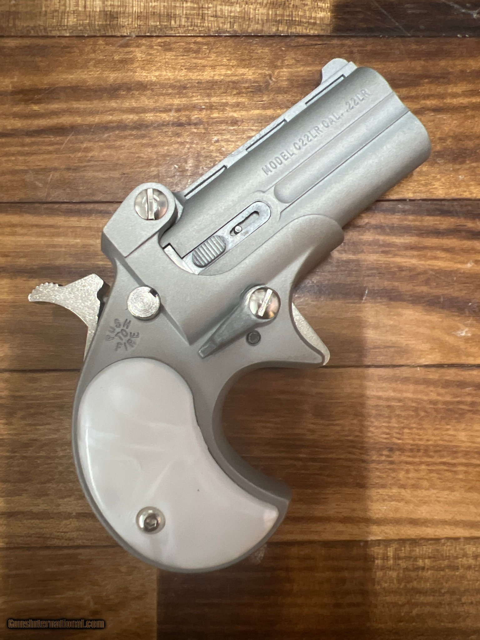 Description: Guns Listing ID: 1390354 This listing is for a brand new cobra Derringer model C 22LR. This is a 22 long rifle over under Derringer. That is just really pretty comes in satin nickel finish with pearl grips. SOLD Manufacturer: COBRA Model: C22LR Caliber Info: .22 LR Condition: Used - Non-Certified Barrels: 2 BARREL Finish: SATIN |