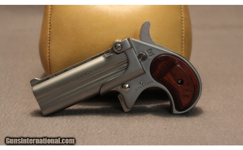 Description: Cobra Enterprises Model CLB22M derringer in like new condition, with two .22 Magnum 3 1/2" ventilated rib barrels with excellent bores. The rosewood grips also rate excellent. An excellent example of the "Long Bore" series pocket pistols. .22 MAG SOLD Metal Condition: Excellent Bore Condition: Excellent Barrels: 3.5 inches Weight: 2.5lbs Item Location: East Grand Forks, MN |