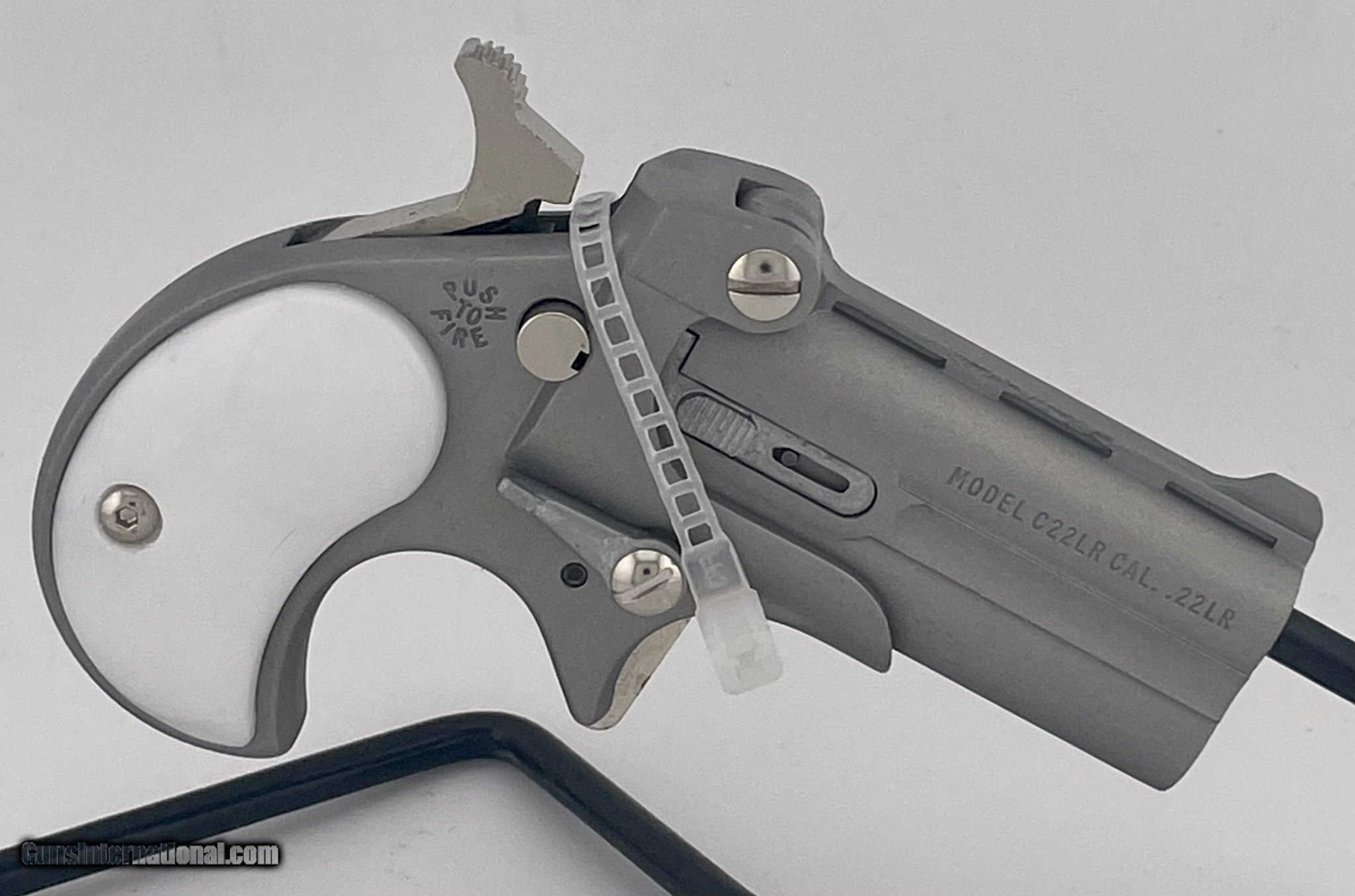 Description: Guns Listing ID: 495382 Cobra firearms C22. 22LR 2.4” barrel satin nickel finish alloy frame. Fixed sights with pearl grips. Manual safety. Weight unloaded is 9.5 oz. Overall length is 4”. With Box. SOLD Manufacturer: COBRA Model: C22 Caliber Info: .22 LR Condition: Used - Non-Certified Barrels: 2 Finish: nickel matte |