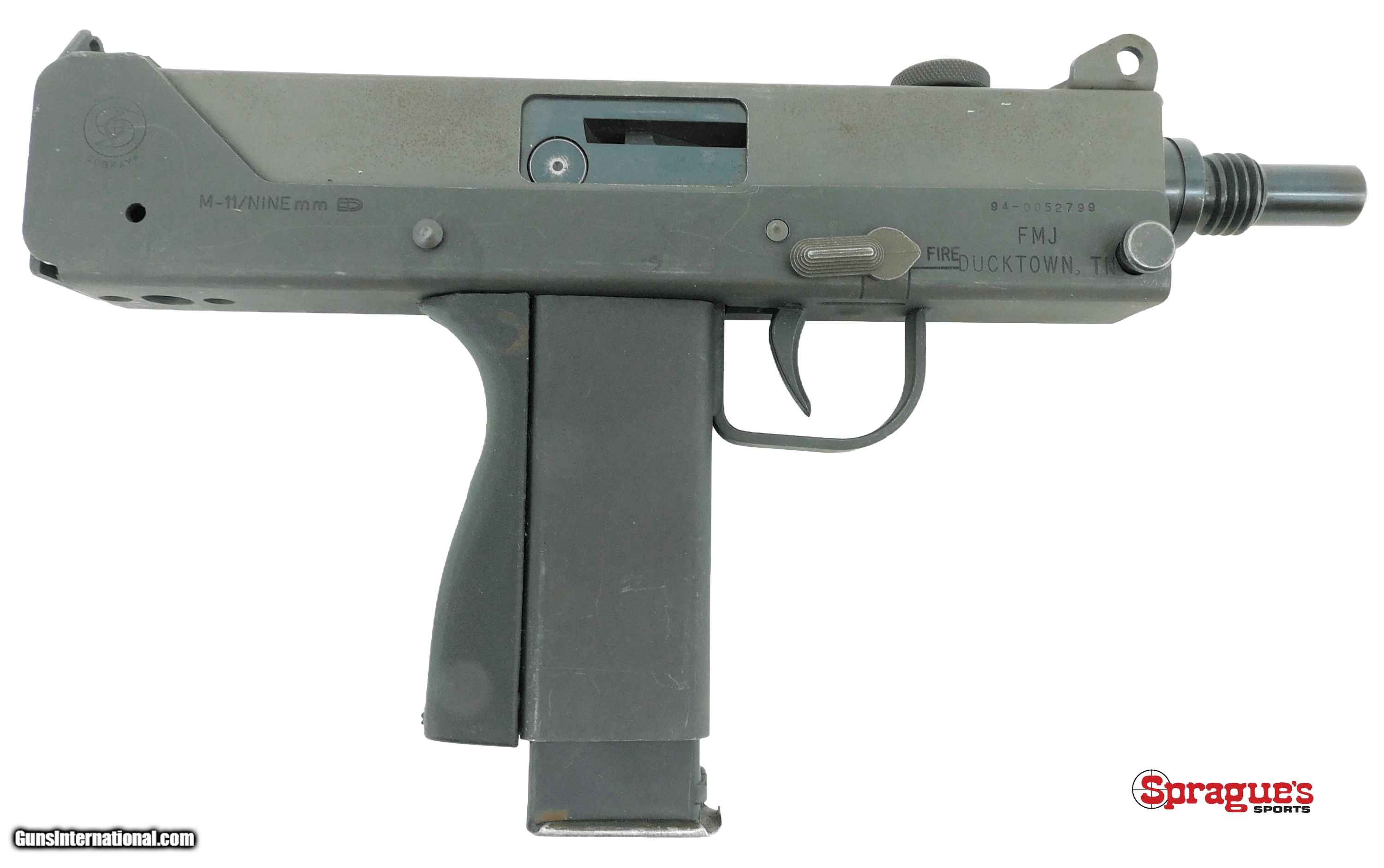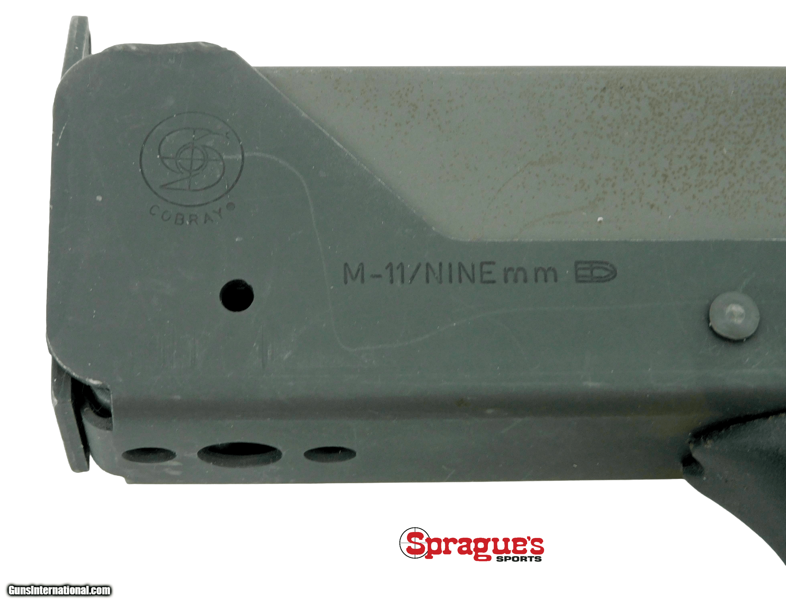 Description: Cobray M-11 High Capacity Semi-Automatic Pistol 5.5" 9MM One Mag Early 1980s-90s The Cobray M-11 family traces its origins to designs produced in the United States during the late 1970s through the early 1990s by Cobray Company and associated manufacturers. While the name “M-11” is often associated with compact military/LE submachine guns, Cobray also produced semi-automatic pistol variants in the same lineage that were marketed to civilian shooters. These pistols were part of a broader era of innovative compact firearm designs that emphasized high magazine capacity in a compact package, appealing to shooters interested in defensive semi-automatic pistols and collectible historical designs. Description This used Cobray M-11 high-capacity semi-automatic pistol is in better than average condition, exhibiting very good bore condition, reliable mechanical function, and attractive overall appearance with only a few light handling marks. The pistol features a Parkerized finish on both the frame and upper receiver for enhanced corrosion resistance and durability. The rear sight consists of a fixed square notch and aperture built into the back plate of the frame, while the front sight is a post with protective wings mounted on the upper receiver, providing a clear and durable sight picture. A bolt cocking knob on top of the receiver allows direct manipulation of the action, and spent cases are ejected out the right side during operation. The pistol is fed by detachable magazines (one 15-round magazine included) and the semi-automatic action functions as expected with smooth manual operation. The 5.5" threaded barrel exhibits a shiny bore with good rifling, indicative of solid internal condition. The pistol grip is integrated into the magazine well with a textured black backstrap, providing a distinctive look and functional grip surface. Overall, this Cobray M-11 pistol combines historical interest, functional condition, and practical features. Specifications