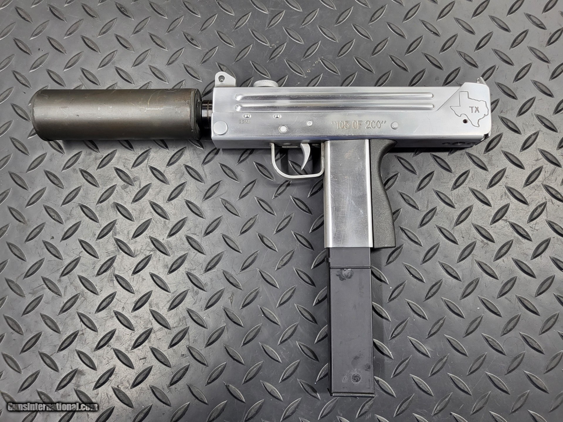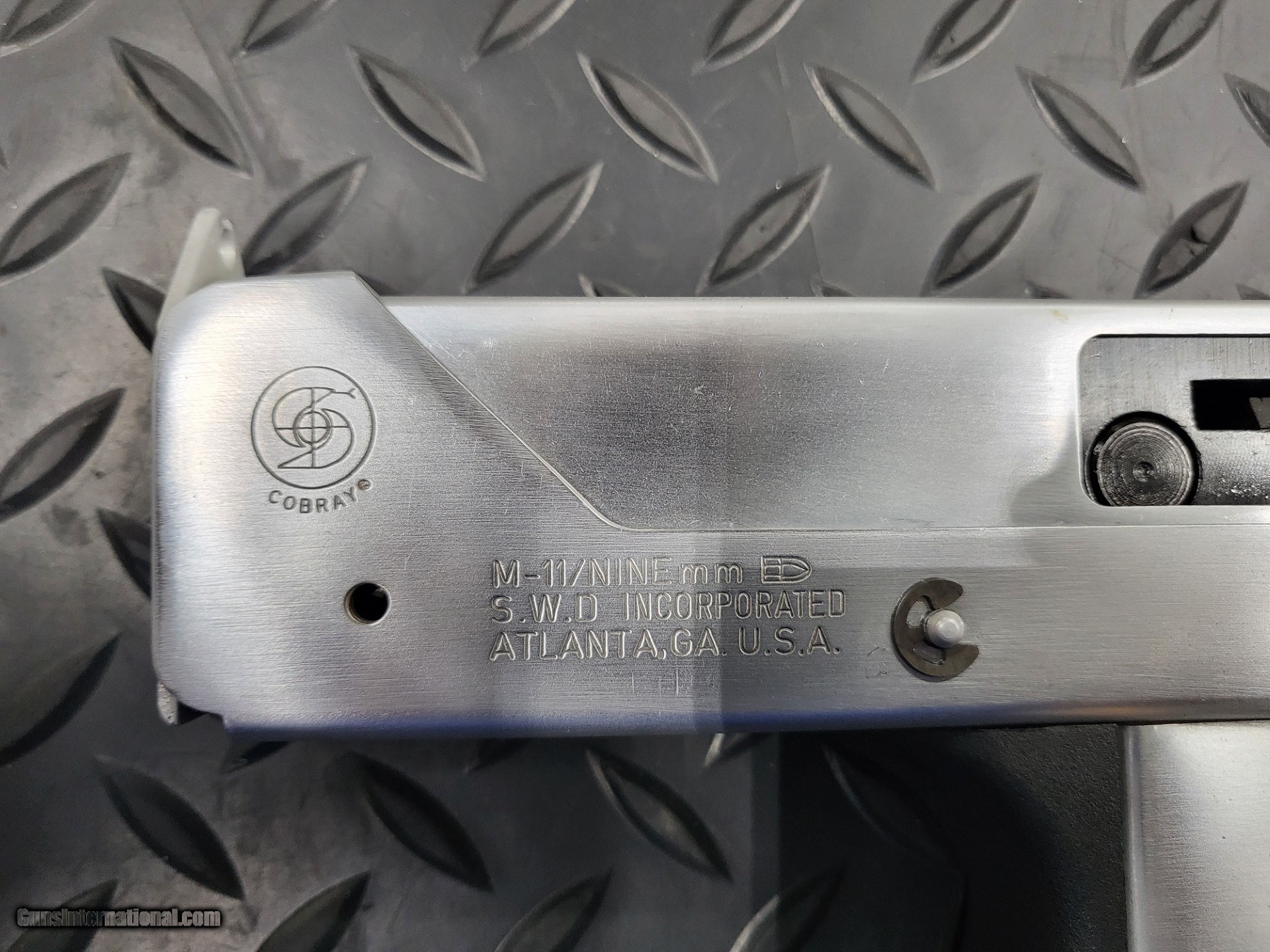 Description: Guns Listing ID: 1401802 This is a pre-owned Cobray M-11/NINE in very good condition with user wear and hardly any storage wear, this pistol comes with around 40 ish rounds in the mag, and comes with a shroud only. There is a engraving of Texas on the side and a batch number \"\"105 OF 200\"\" on the left side of the firearm. I#0826331 UEM AG SOLD Manufacturer: COBRAY Model: M-11 / NINE Caliber Info: 9MM LUGER (9X19 PARA) Condition: Used - Non-Certified Barrels: 2 BARREL Finish: STAINLESS |