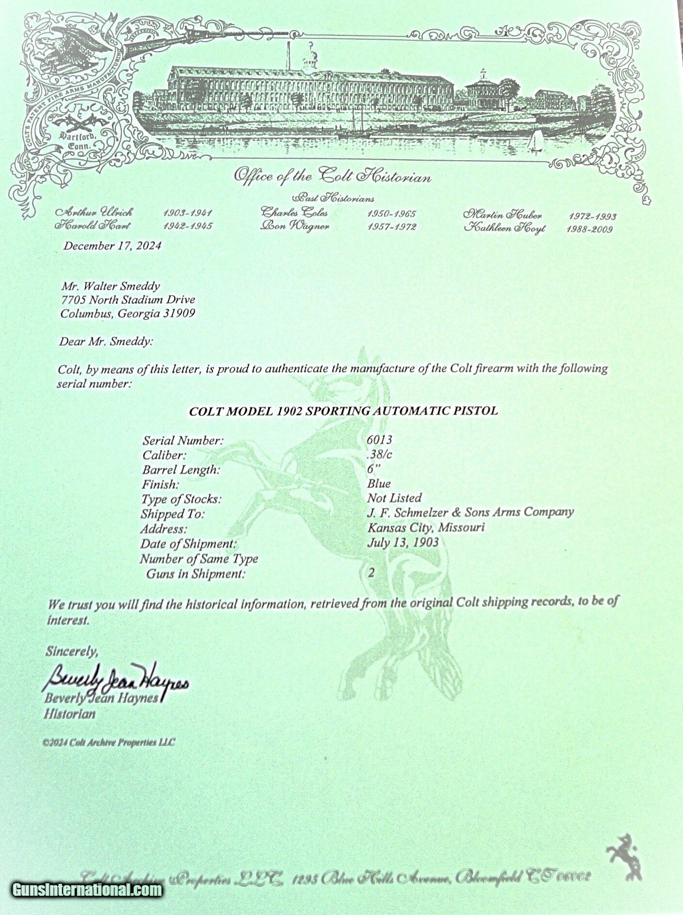 COLT MODEL 1902 SPORTING - COLLECTOR CONDITION WITH ARCHIVE PAPER