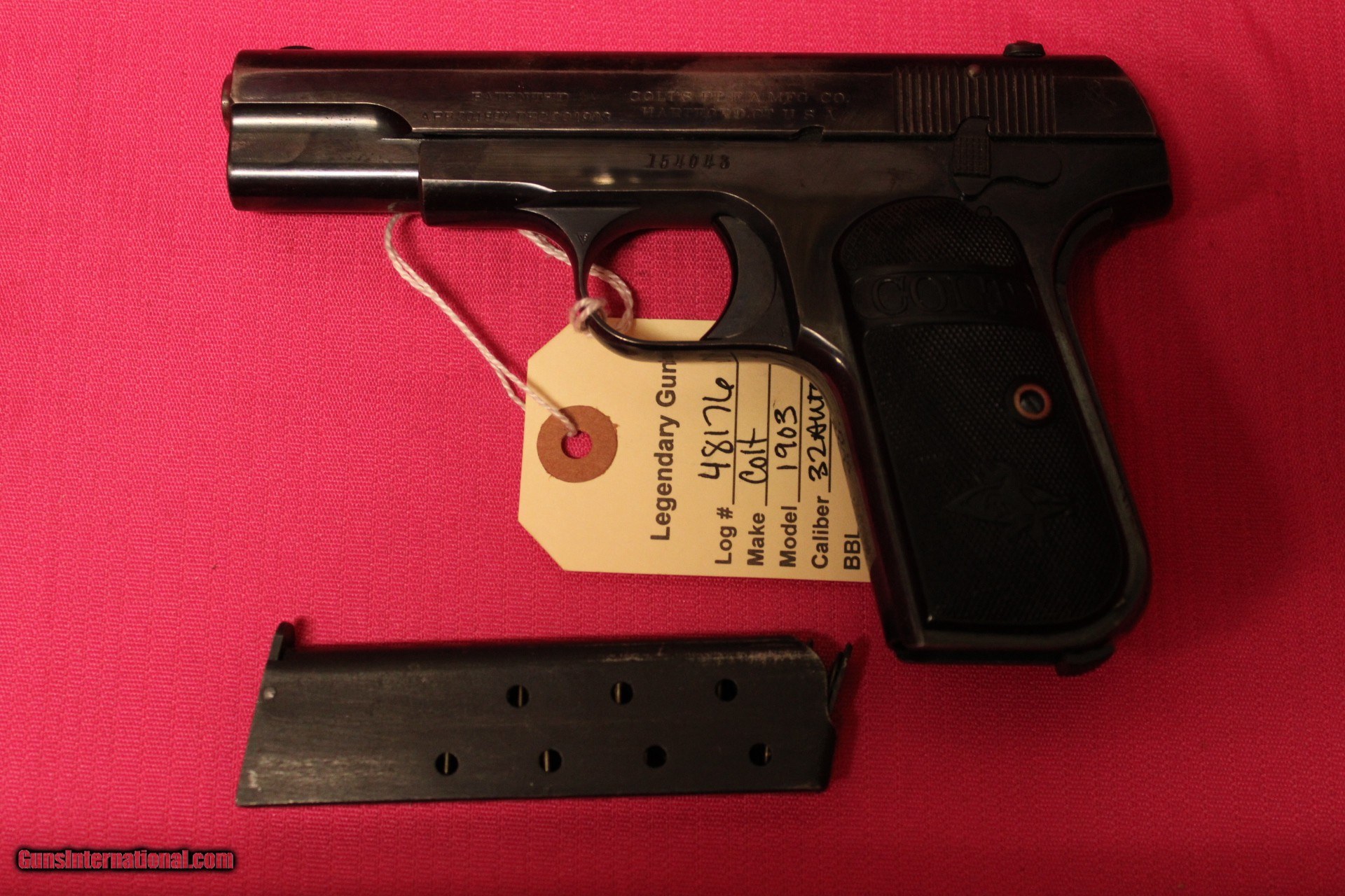 Description: Colt 1903 in 32ACP with blued finish. Mechanically pistol is in very good condition, slide has a fair amount of bluing loss especially on the LH side, Grips are in great condition, and bluing that is on the gun is very bright. Comes with 1 mag. Made in 1913 *Legendary Guns in Phoenix AZ 602-242-1195 Hours of operation Tuesday-Friday 10-6 Sat 10-5 Closed Sundays & Mondays *We accept all Major credit cards. We DO NOT charge an additional fee for Credit Cards. We also accept Postal Money orders or Certified Bank Checks{Check & Money order payments must arrive within 7 days of initial agreement and will be held for 3 days before items are shipped} *Shipping is $50 for rifles/shotguns {AK & HI Extra} and $35 for handguns. Arizona Residents Must Pay Sales Tax. We DO NOT ship Internationally. *We offer a 60 day layaway on purchases of $500 or more. Items require 1/3 of the total price as down payment which is NON-REFUNDABLE and you have 60 days to pay off the balance. *Please call or email with any questions and to confirm availability before buying. We are happy to answer all questions. All items listed are also for sale at our Phoenix, AZ location *We offer a 3 day inspection period on USED FIREARMS ONLY, We accept returns within the 3 day inspection period with NO REFUNDS ON SHIPPING CHARGES and a 10% restocking fee. *Trades are welcome for customers who can visit our Phoenix, AZ location, We DO NOT engage in online or mail in trades. SOLD Curio/Relic: Yes Handgun Caliber: .32 ACP (7.65x17mm Browning SR) Manufacturer: Colt Model: 1903 Condition: Used |