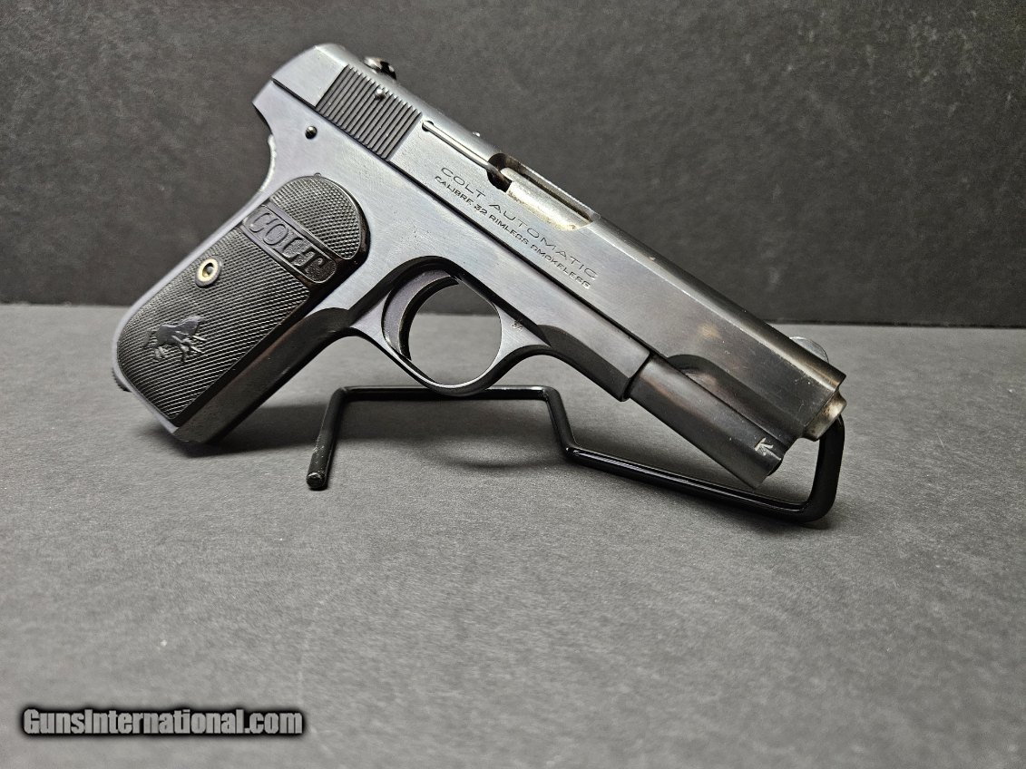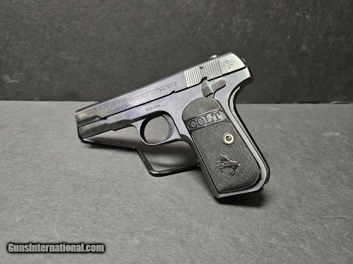 COLT 1903 HAMMERLESS 32 CAL  Description: Guns Listing ID: 1066836 Very Good condition with no scratches or scuffs. 1 magazine, Type III: integrated barrel bushing, 3 3/4-inch barrel; 1910–1926, SN 105,051 through 468,789. Serial Number is 375476 Mfg Date according to Blue Book of Guns is early 1921 (Per SN range). SOLD Manufacturer: COLT Model: 1903 HAMMERLESS Caliber Info: 32 CAL Condition: Used - Non-Certified Barrels: 3.75 BARREL Finish: BLUED |