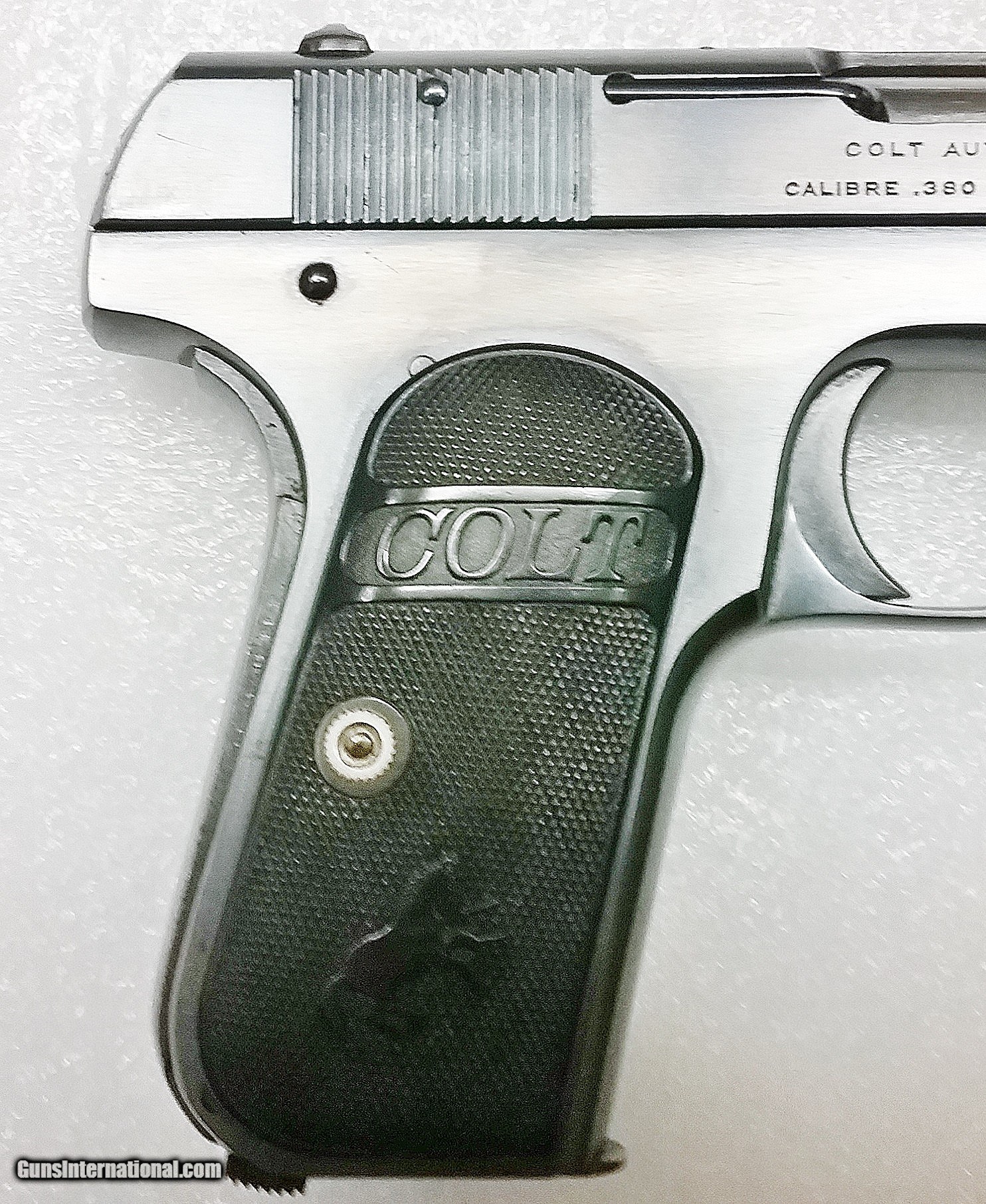 Description: This 1921 produced .380 ACP Colt Model 1908 has a 3-1/2” barrel and blued slide mounted with fixed sights. The bore is very good. The blued finish is very good throughout with the exception of some light pitting and touch up bluing on the grip safety. The right side of the slide is stamped with “Colt Automatic Calibre .380 Hammerless”. And the left side is stamped with “Patent Dates and Colts P.T.F.A Mfg Co. Hartford CT U.S.A.” and the Colt proof mark at the rear of the slide. The original Colt checkered Synthetic grips are in very good condition. Everything on the gun works and functions as it should. This pistol comes with two 7 shot magazines, original box and papers. Please Note: The original box is worn and parts have become separated. The weight is 1 lb. 6 oz. Our stock number is #C93. Will ship to any FFL anywhere in the United States. Buyer pays freight and insurance. SOLD Manufacturer: Colt Model: 1908 Caliber Info: .380 ACP Bore: Rifled Condition: Very Good Metal Condition: Very Good Bore Condition: Very Good Barrels: One Action: Semi-Automatic Triggers: One Finish: Blued Weight: 1 lb, 6 oz Sights: Fixed Manufacture Date: 1921 Extras: With Box, Papers & 2 Mags Item Location: OR |