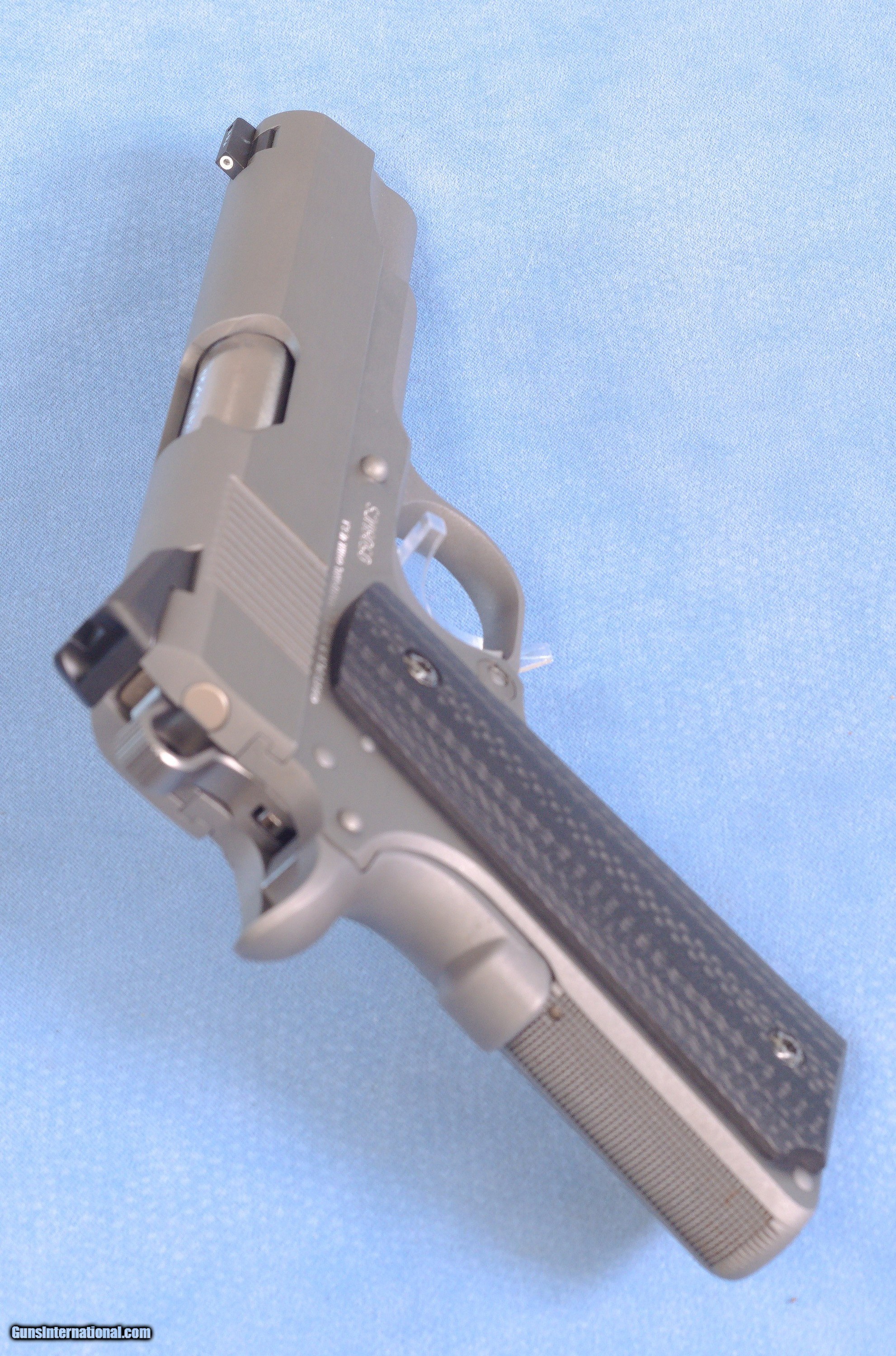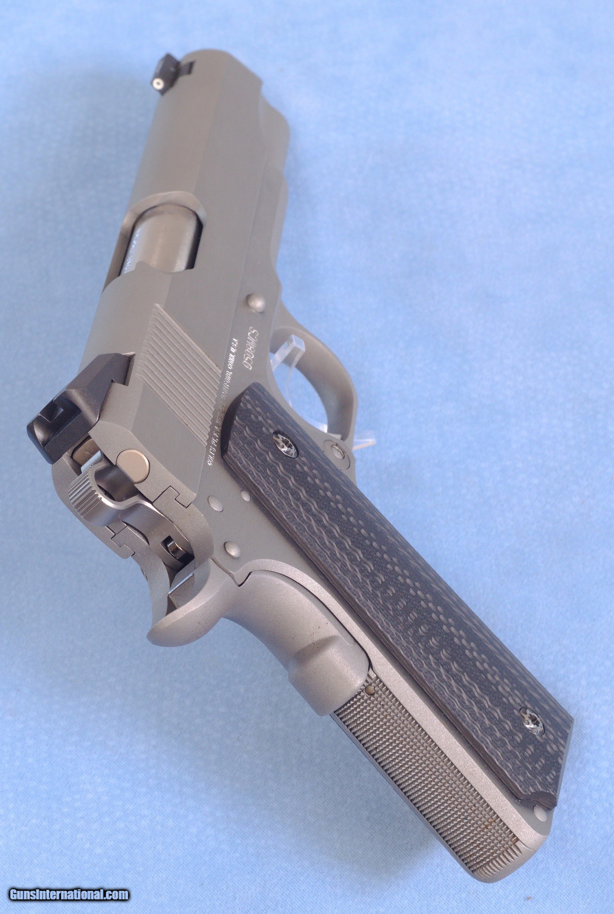 Description: Presented here is a very clean Series 70 Colt Commander 1911 semi auto pistol chambered in .45 auto caliber. The 1911 was designed by John Browning, the 1911 is the best-known of his designs to use the short recoil principle in its basic design. This particular example is of the Commander size configuration with full size grip and a shorter 4 1/4" barrel. This brushed stainless steel pistol is in very good condition overall and everything is mechanically perfect. The 4 1/4" barrel has a bright bore with strong rifling. The pistol has light handling marks and one small mark made during reassembly by the takedown pin. Several extras like spare grips, 3 magazines, hammer, trigger and safety. This pistol features an upswept beavertail grip safety, trigger adjustable for overtravel, finely checkered frame both front and rear, Novak style rear sight and tritium front sight. The 4 1/4" barrel has a bright bore with strong rifling. This pistol would make a fine concealed carry firearm where permitted by local and state laws. PRICE: $1295.00 We are Antique & Modern Firearms in Lexington, KY, a dealer of fine firearms since 1974. To Inquire please call 859-276-1419 We Buy, Sell, and Trade Firearms & Knives. Do you have an Individual Firearm, Firearms Collection, or Firearms Estate to sell? Give us a call or send an email, and we can talk about buying the item(s) outright or selling them on consignment for you. NOTE: No additional fee for a Credit Card payment SOLD Handgun Caliber: .45 ACP (.45 Auto) Manufacturer: Colt Model: Commander 1911 Serial Number: 0508WCS Barrel Length: 4 1/4 inches Condition: Very Good Metal Condition: Very Good Bore Condition: Very Good strong rifling |