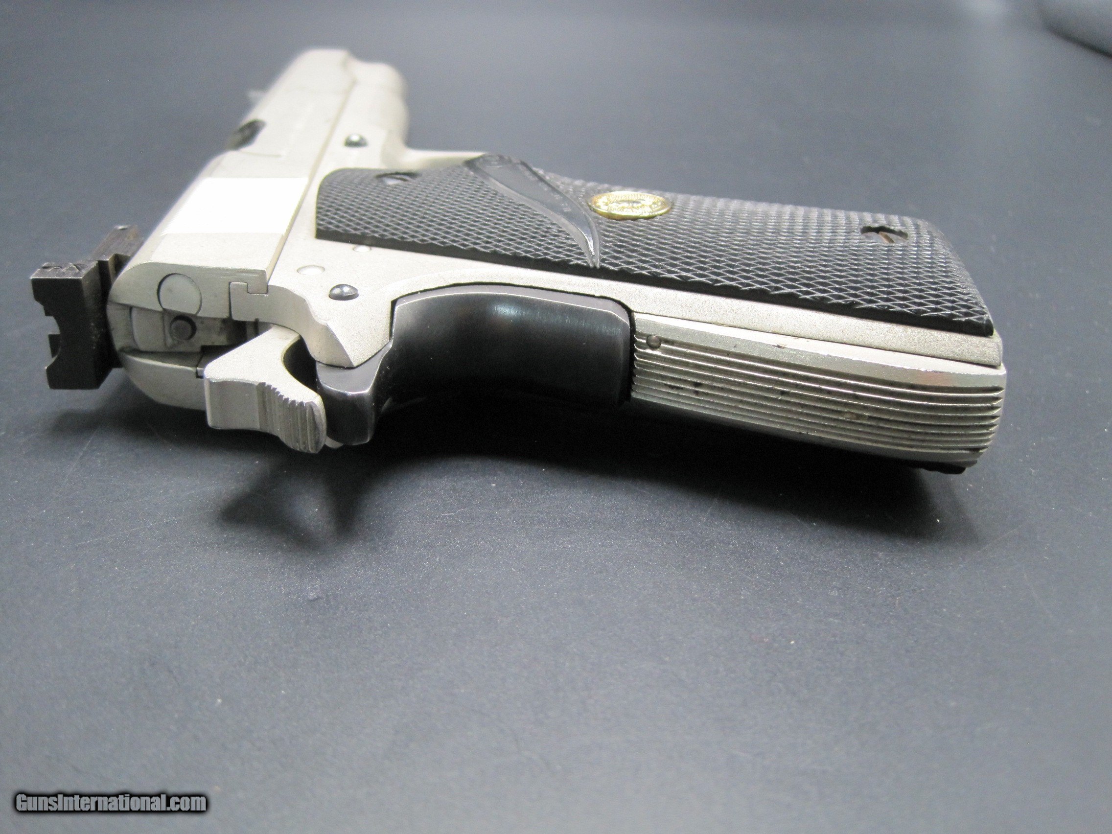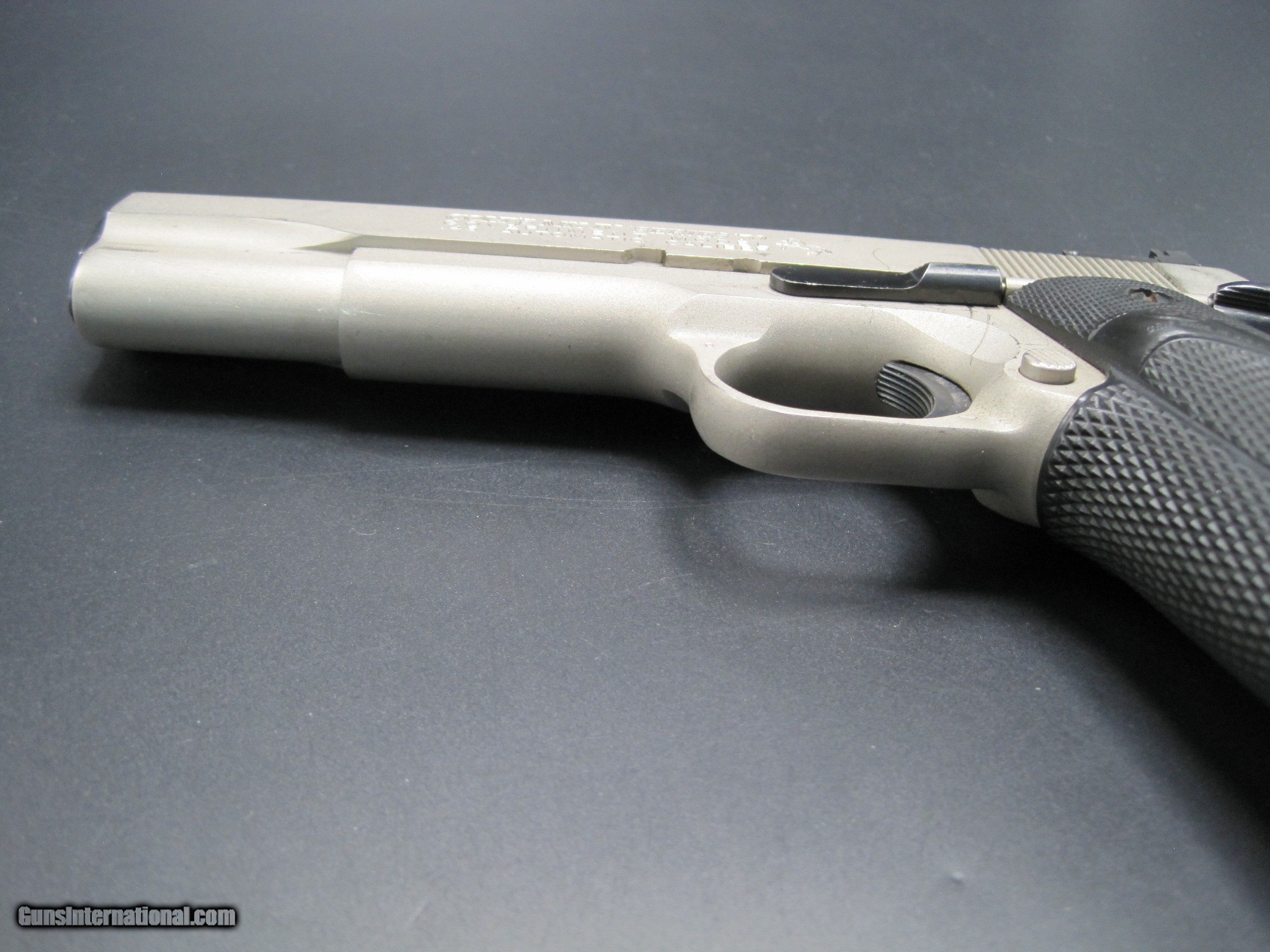 Description: COLT 1911 GOVERNMENT MODEL SERIES MK IV SERIES 70 45 AUTOMATIC CALIBER . RARE FACTORY 2 TONE MODEL . SATIN NICKEL FINISH W/PACHMAYR GRIPS W/GOLD COLT MEDALLIONS . BLACK TRIGGER , ADJUSTABLE MICRO REAR SIGHT , TAKEDOWN LEVER , SAFETY & GRIP SAFETY & BARREL BUSHING . SEE PICS FOR CONDITION . OVERALL A GREAT SHOOTER . SOLD |