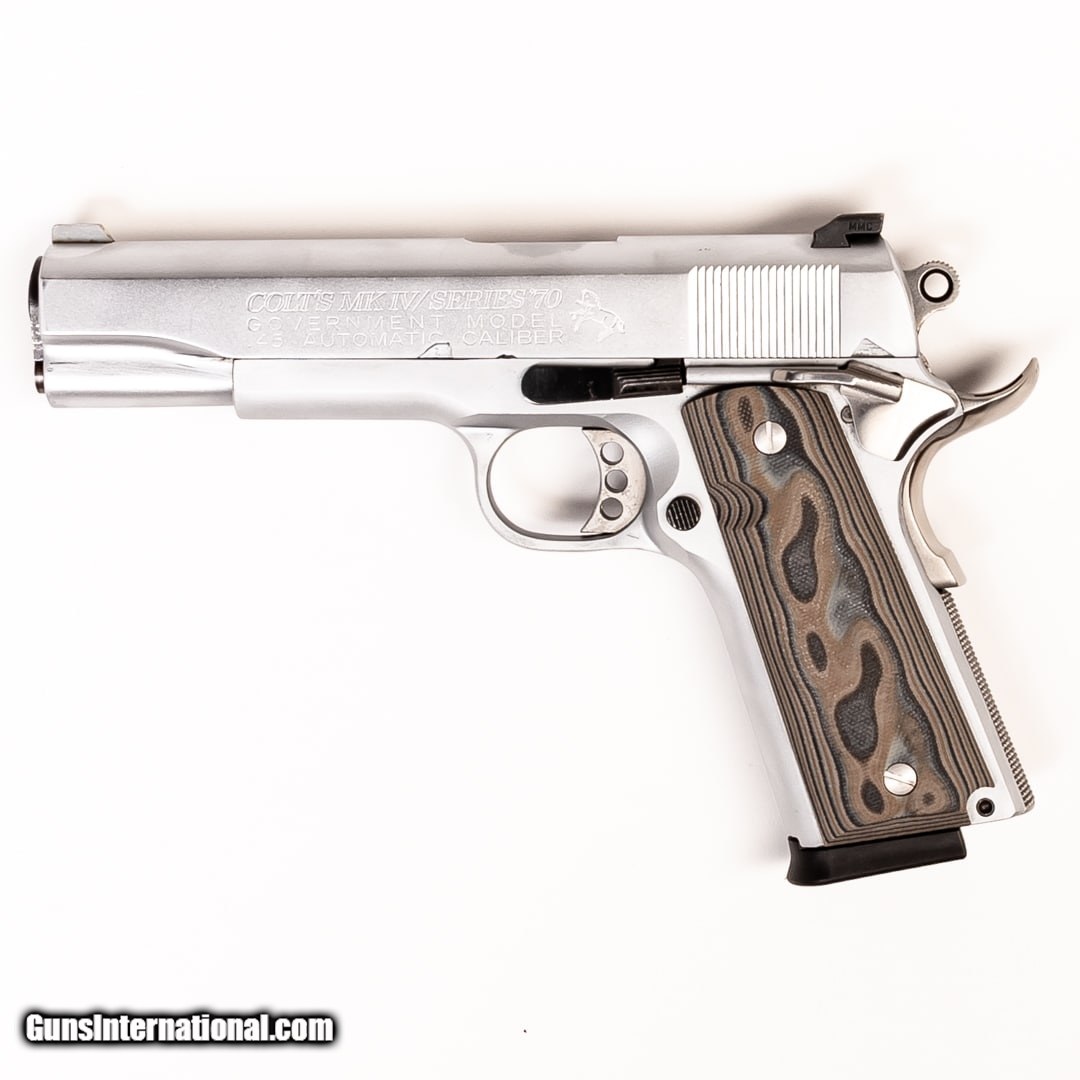 Description: Guns Listing ID: 521866 The Colt Government Model MKIV Series 70 is a premium-quality 1911 chambered in the classic 45 ACP. This is an excellent collector piece, shooter, and self-defense sidearm. This Government Model MKIV Series 70 has G10 grips installed and includes one 8-round magazine. SOLD Manufacturer: COLT Model: GOVERNMENT MODEL MKIV SERIES 70 Caliber Info: .45 ACP Condition: Used - Certified Barrels: 5 BARREL Finish: STAINLESS |