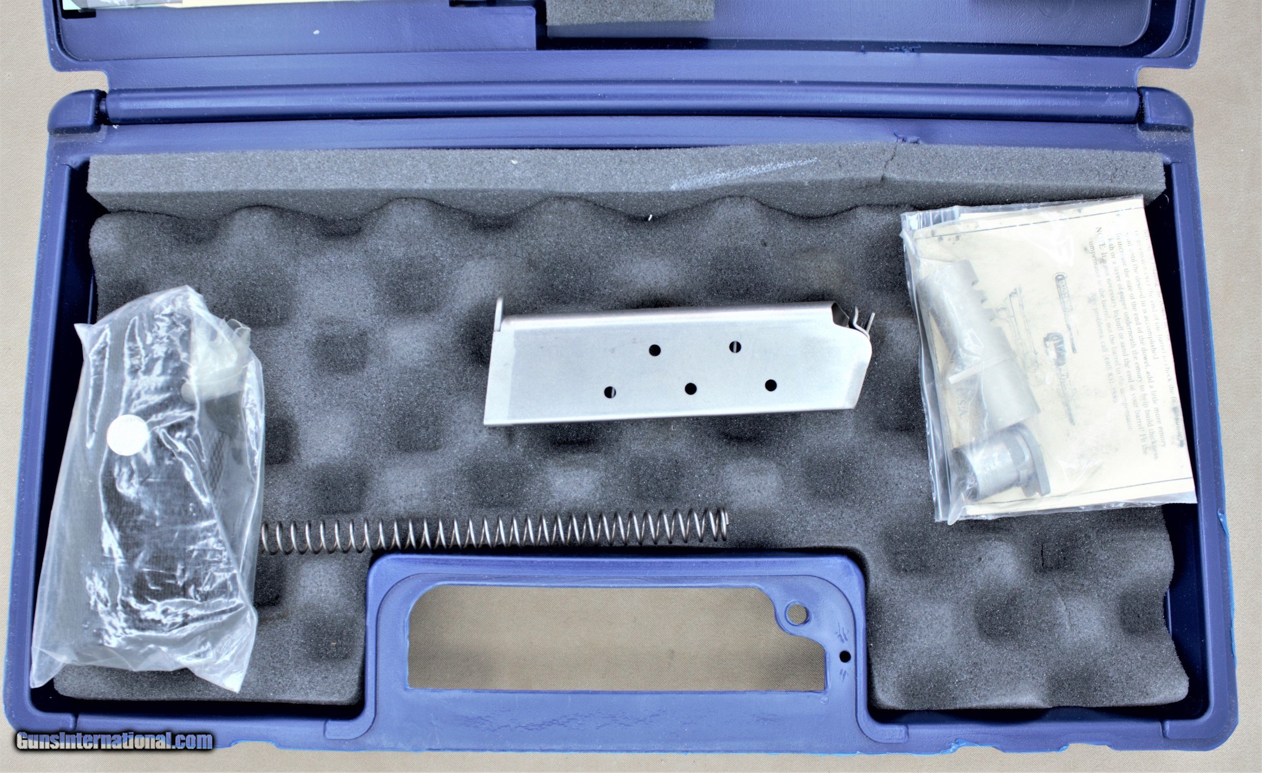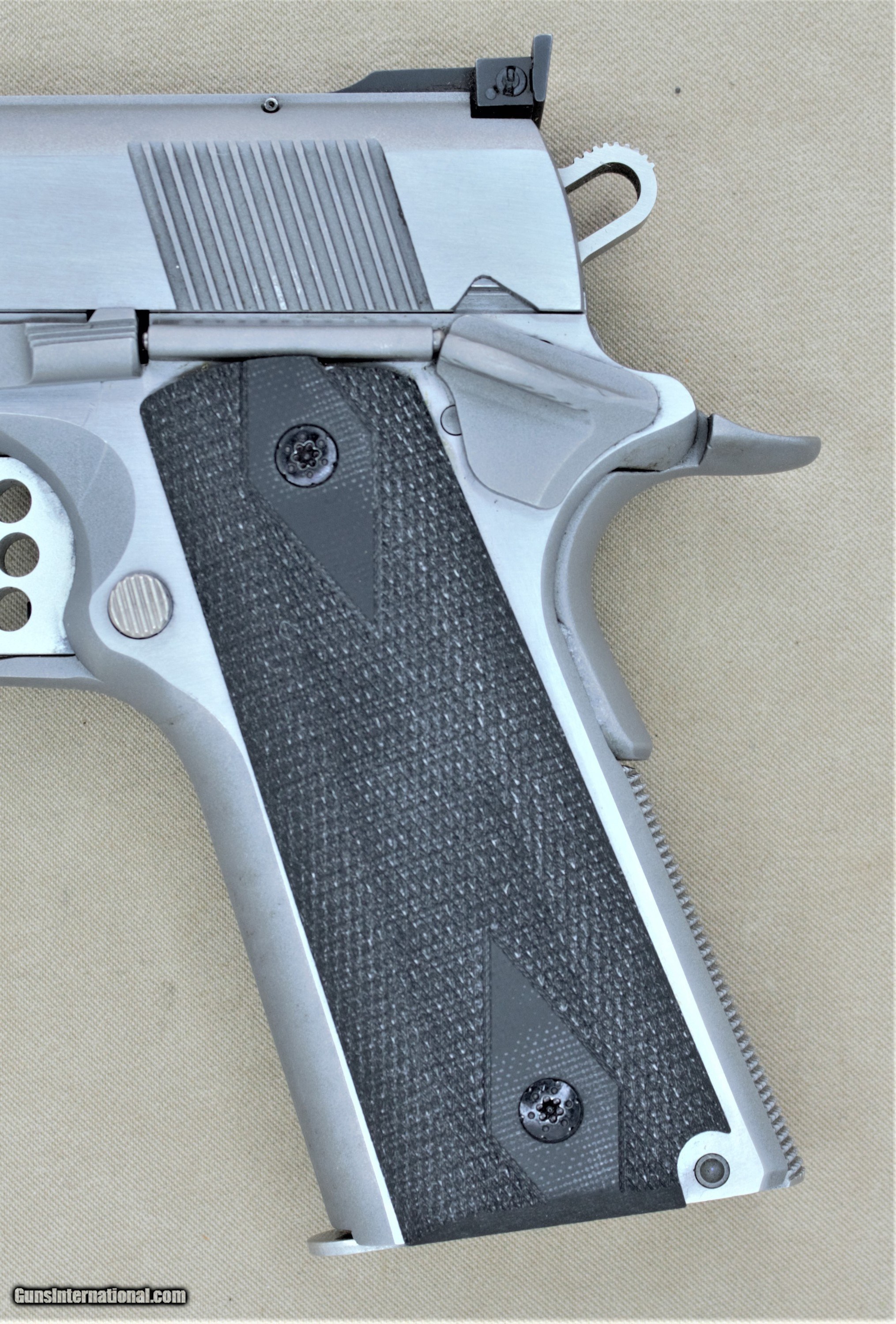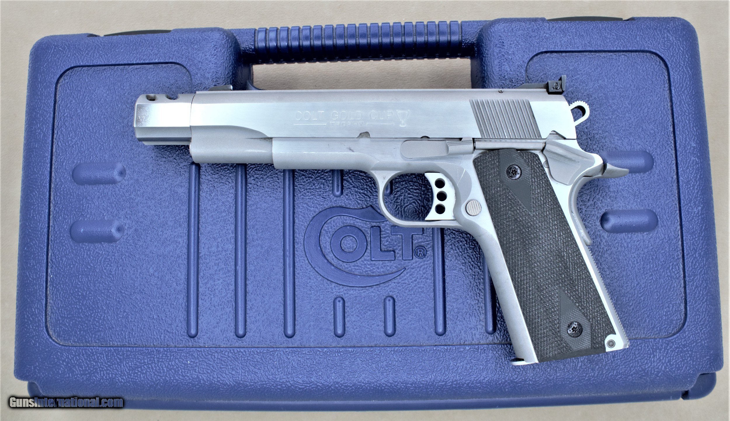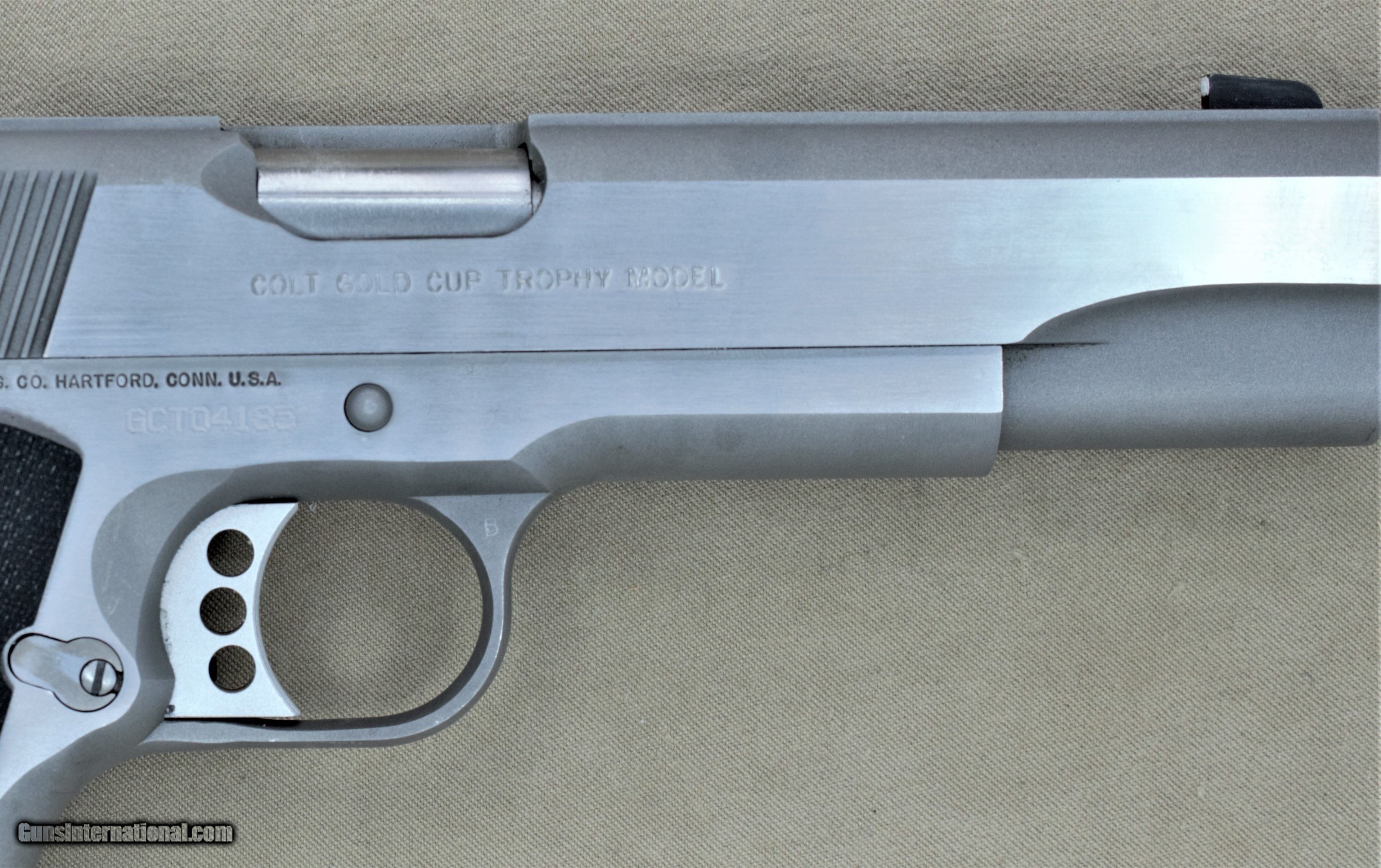 Description: Colt Gold Cup Trophy with 2 sets of grips, two recoil springs, two magazines, all paperwork, bushing wrench and blue factory case. Also included is a custom compensator which is installed on the pistol and a Fire Dragon triple ported bushing replacement. This GCT was manufactured in 1998 and is a series 80. The stainless steel finish on the slide is in really good shape. The finish on the frame has the scratch from being assembled incorrectly. The frame also shows other scattered scratches and imperfections. The action is smooth and the trigger pull is what you'd expect from a Colt Gold Cup trophy. While having been fired the bore is bright with great rifling. The grip set on the pistol are custom. But, included is the grip set that was on the pistol when it left the factory. Both magazines are the factory Colt marked magazines that shipped with the GCT. This pistol would make a great range gun. PRICE: $1550.00 We are Antique & Modern Firearms in Lexington, KY, dealer of fine firearms since 1974. PH. 859-276-1419 We Buy, Sell and Trade Firearms & Knives. Have a Individual Firearm, Firearms Collection, or Firearms Estate to sell, let us know, we can buy or consignment sell it for you. NOTE: No additional fee for a Credit Card payment. SOLD Handgun Caliber: .45 ACP (.45 Auto) Manufacturer: COLT Model: GOLD CUP TROPHY Serial Number: GCT04185 Barrel Length: 5 INCH Condition: Very Good Metal Condition: Very Good Bore Condition: Very Good / Excellent Action: single Manufacture Date: 1998 |