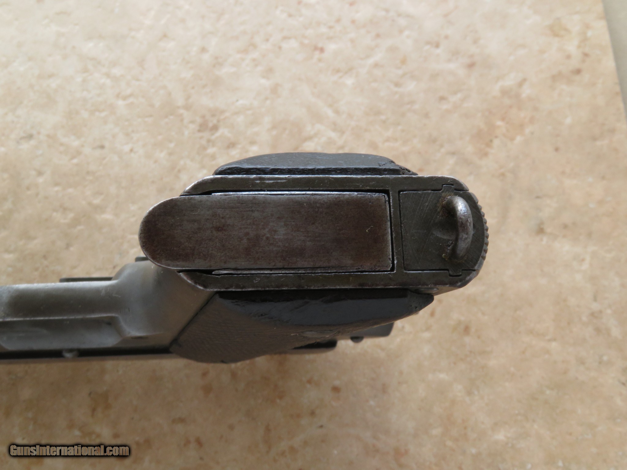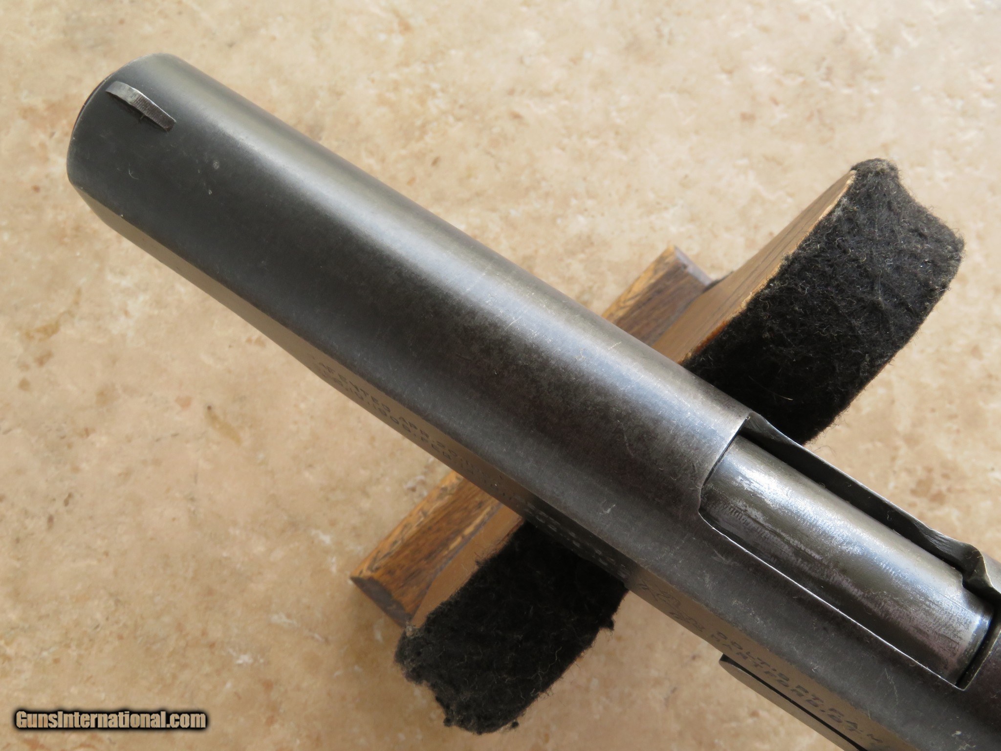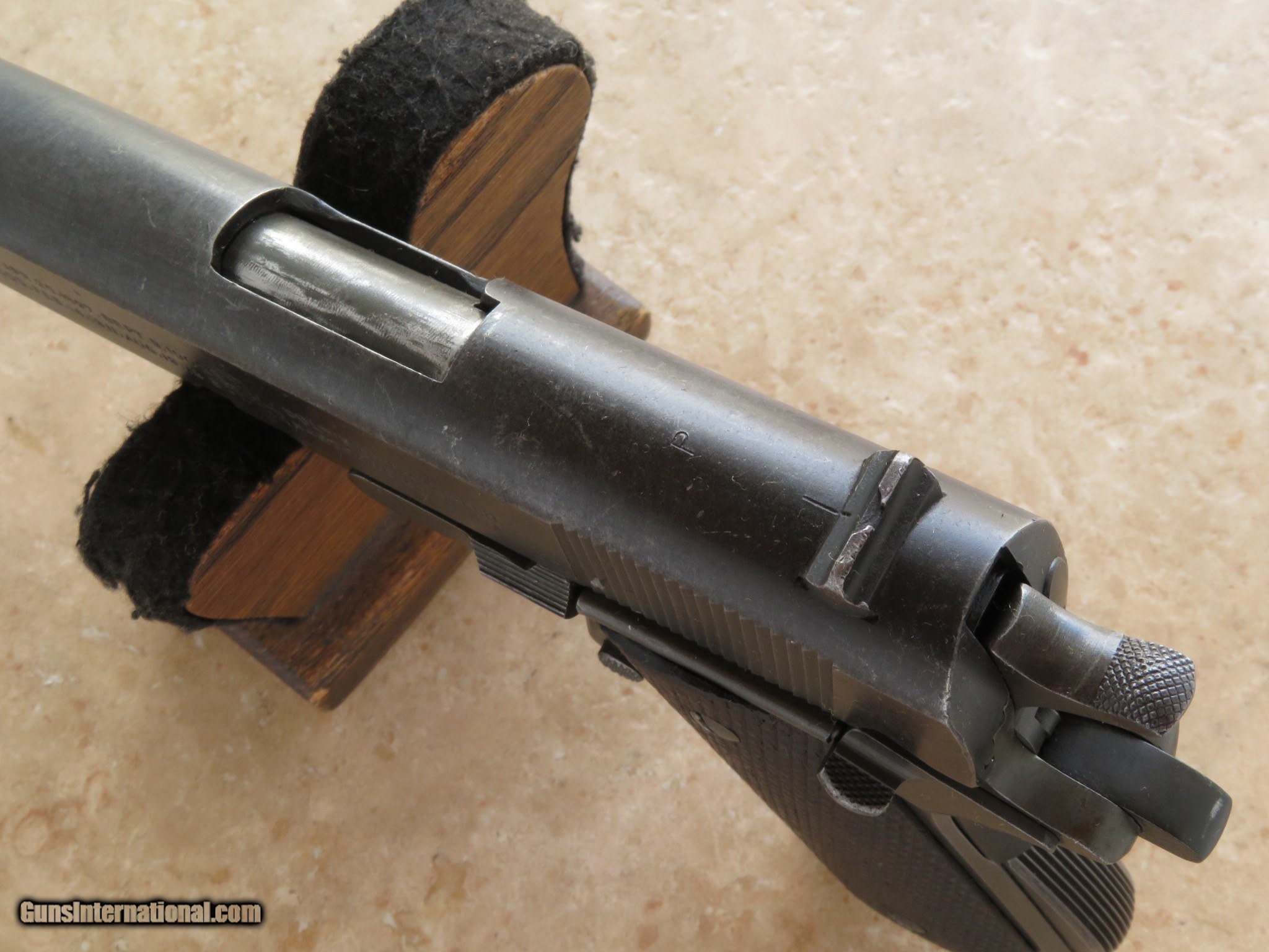 Description: ----SOLD----A nice example of a WW2 1943 vintage Colt 1911A1 service pistol. This pistol has been through an arsenal re-work and most like saw action in WW2 and Korea. It retains approximately 70% of its military parkerized finish, with some thinning on the straps and high edges of the frame and slide. The Colt frame is numbered 937549, and the Colt slide is numbered 1131155, both 1943 manufactured. The grips are pre-war Colt full checkered, showing wear and handling marks. Retains all GI parts amd correct unmarked magazine. The unmarked GI Barrel has a bright bore with sharp rifling and the action functions perfectly. PRICE: $1,595.00 We are Antique & Modern Firearms in Lexington, KY, dealer of fine firearms since 1974. PH. 859-276-1419 We Buy, Sell and Trade Firearms & Knives. Have a Individual Firearm, Firearms Collection, or Firearms Estate to sell, let us know, we can buy or consignment sell it for you. (sales at am-firearms) SOLD Curio/Relic: Yes Handgun Caliber: .45 ACP (.45 Auto) Manufacturer: Colt Model: M1911A1 Serial Number: 937549 Barrel Length: 5 |