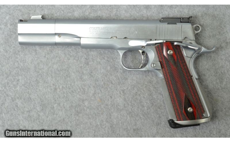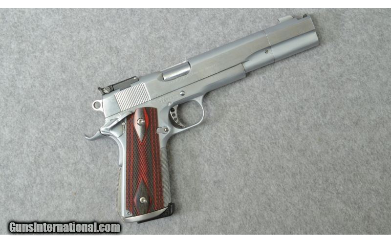 Description: SOLD Caliber Info: .45 ACP Chambers: Semi-auto. Detachable magazine. Metal Condition: Very good. Wood Condition: Excellent Bore Condition: Excellent. Bright, and shiny. Barrels: 5.75" barrel with compensator. Triggers: Skeletanized custom trigger. Customized knurled hammer. Stock: Double diamond checkered rosewood grips. Custom knurled magazine release. Stock Dimensions: 10.25" overall length. Butt Pad: Double diamond checkered rosewood grips. Grips saftey. Weight: 47.2 ounces. Sights: Adjustible rear target sight, blade front sight. Extras: Includes 4 magazines. Item Location: Centerville, OH |