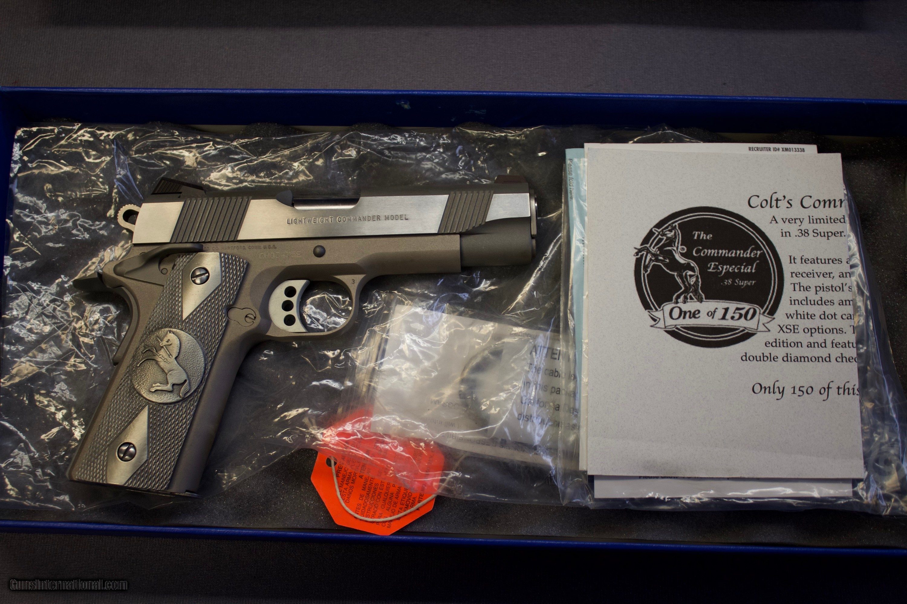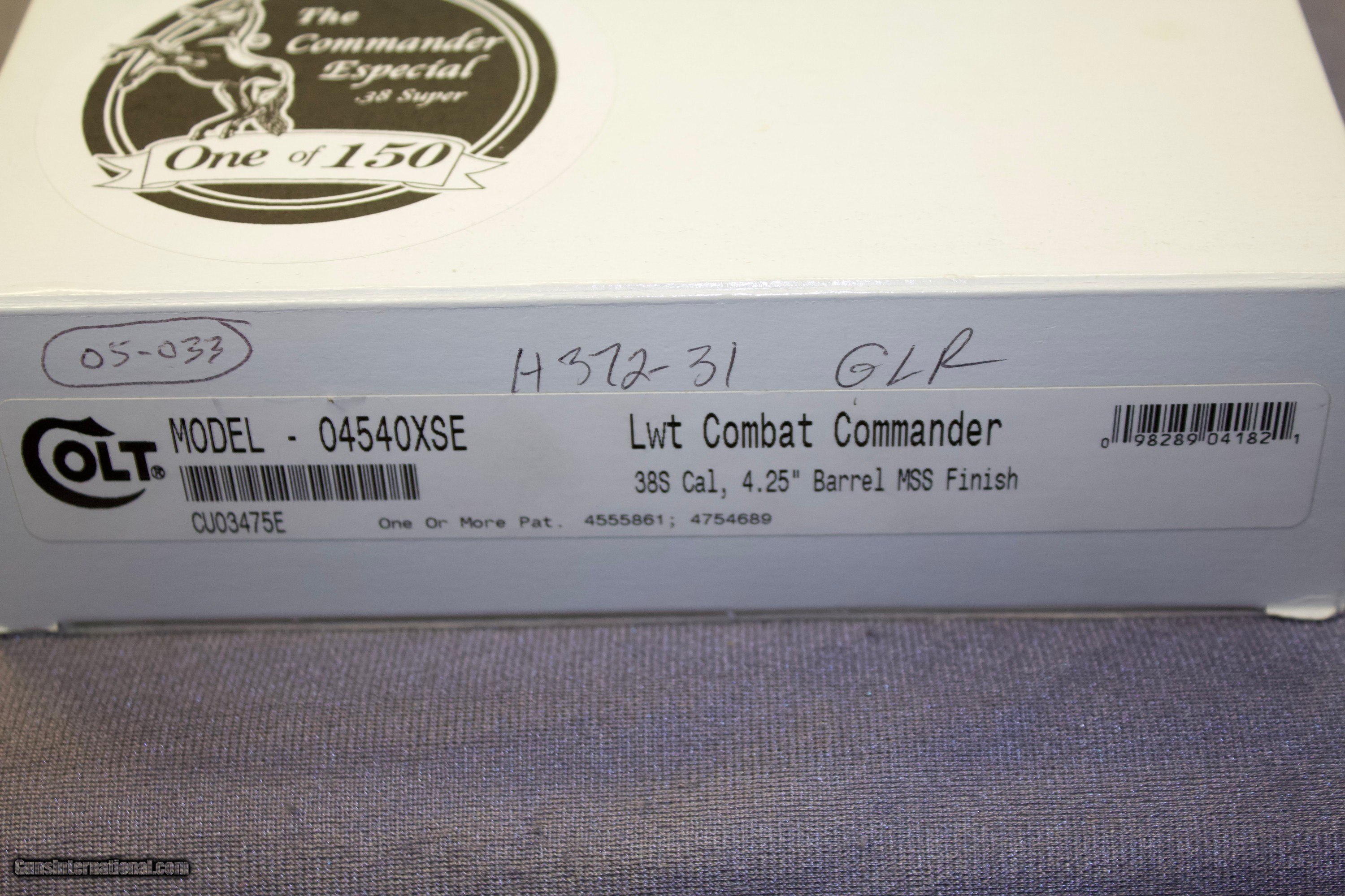 Description: Listed is a Colt Combat Commander, Lightweight, Special Edition, Stainless Steel Pistol is 1 of 150 Comes in original factory box with accessories Pistol is ANIB and looks to be unfired Price is $2950.00 + Shipping SOLD Handgun Caliber: .38 Super Auto, .45 ACP (.45 Auto) Manufacturer: Colt Model: Combat Commander Barrel Length: 4 Condition: Excellent/ANIB Action: Single Action |