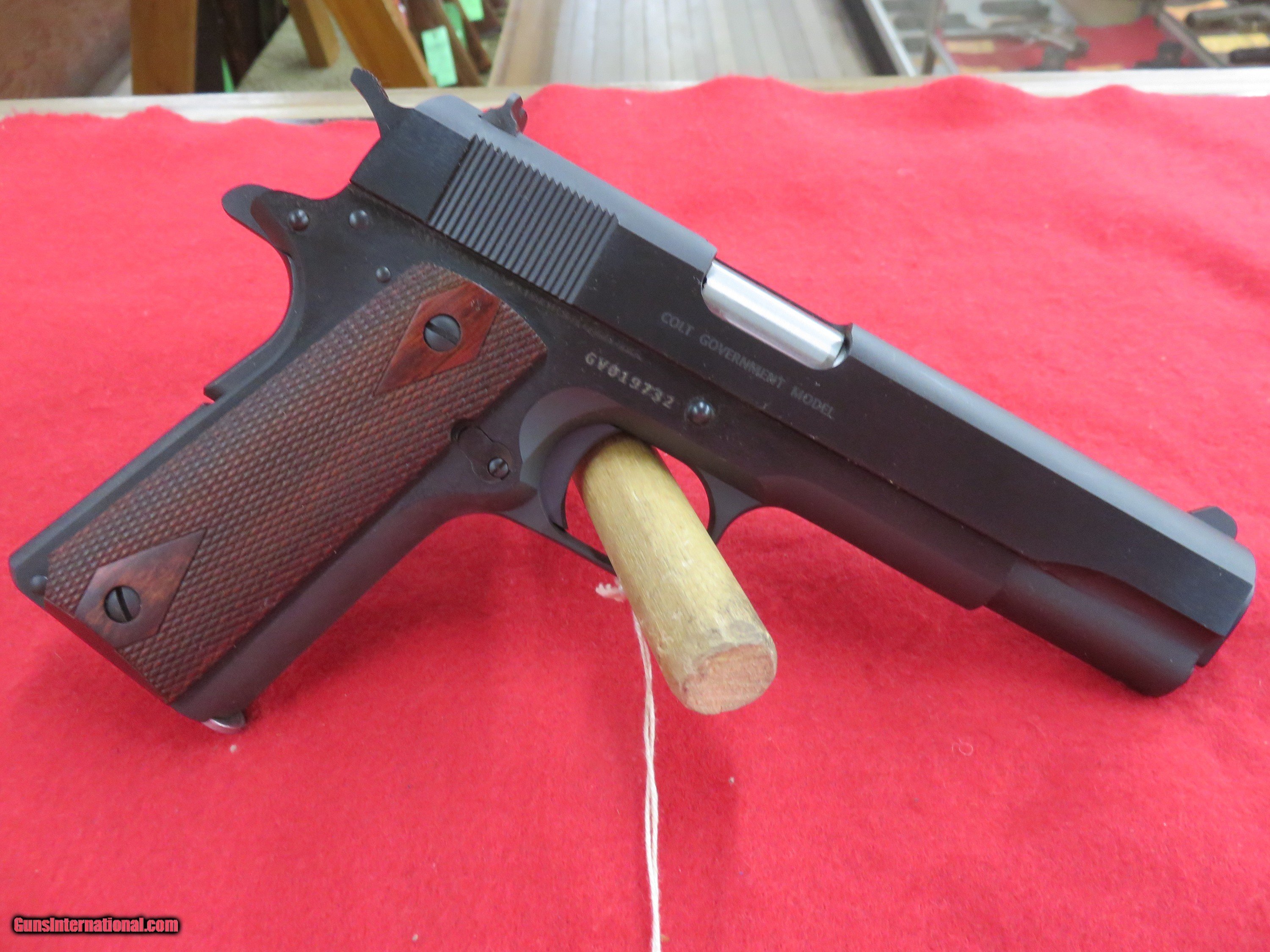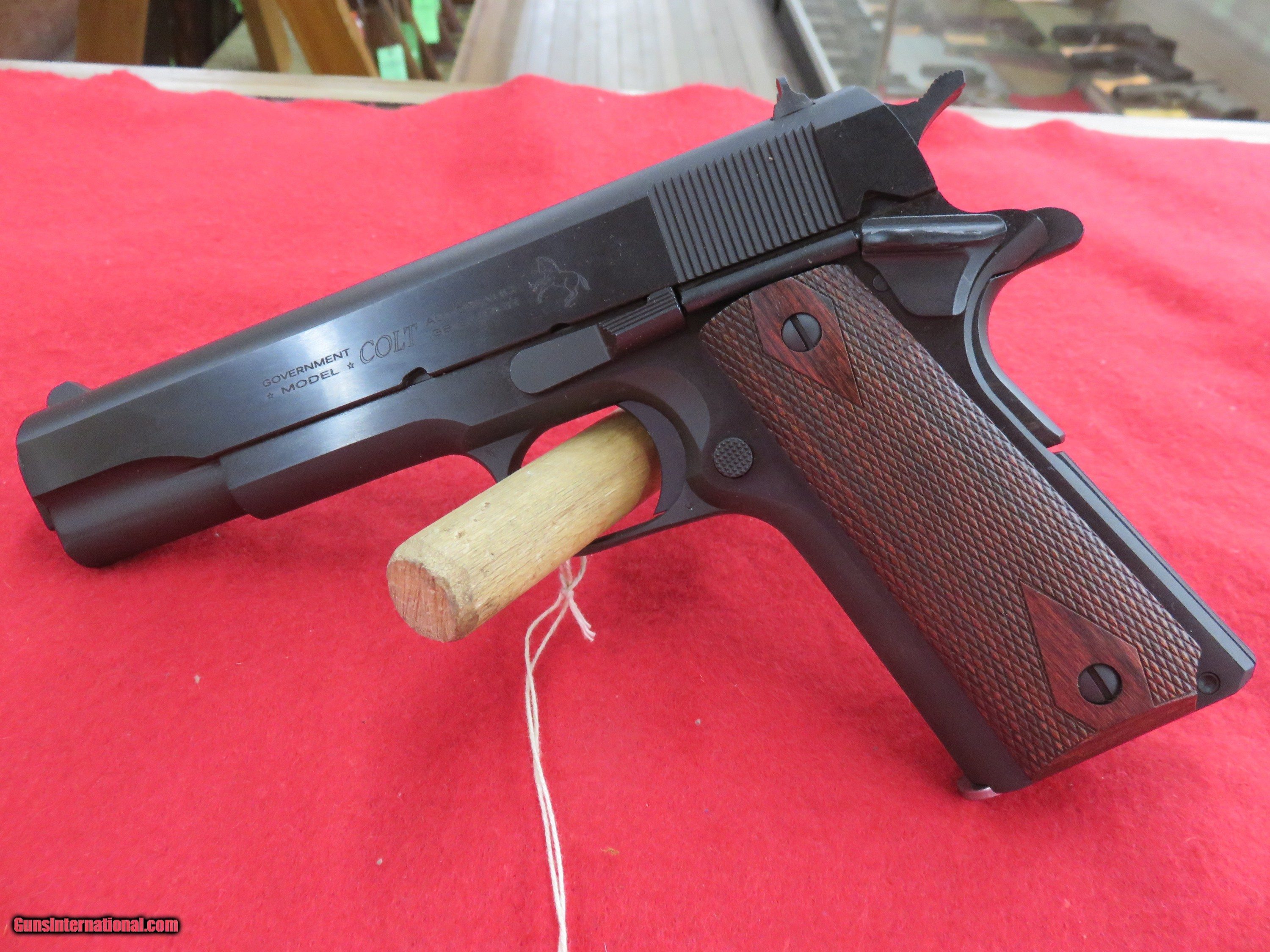 Description: Colt Government Model, 38 Super, 5" barrel, eight shot colt mag, blued with checkered wood grips, adjustable sights, no box, overall condition 99%, $895.00 + $50.00 shipping SOLD |