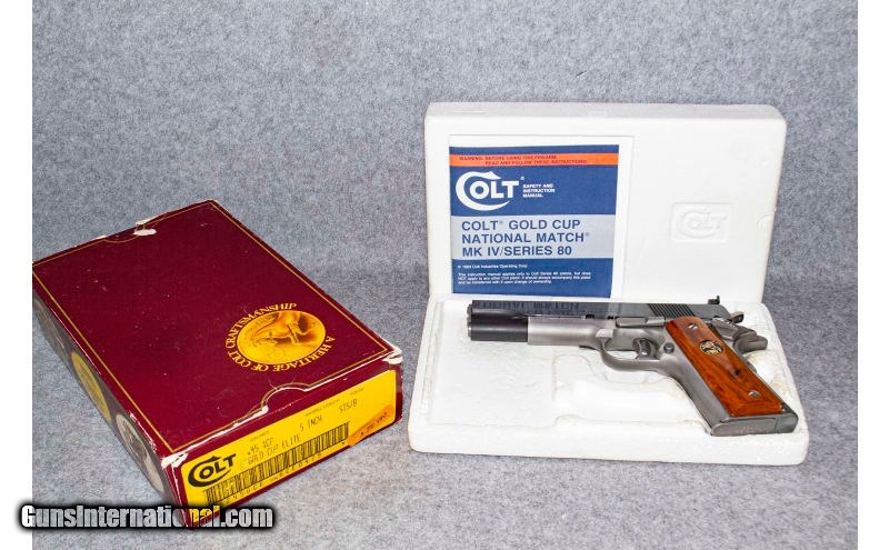 Description: Excellent condition Colt Gold Cup Elite in .45 Auto and stainless and blue. Comes with original box and manual and one magazine. .45 Auto SOLD Barrels: 5 Weight: 2 lbs Item Location: Lone Tree, CO |