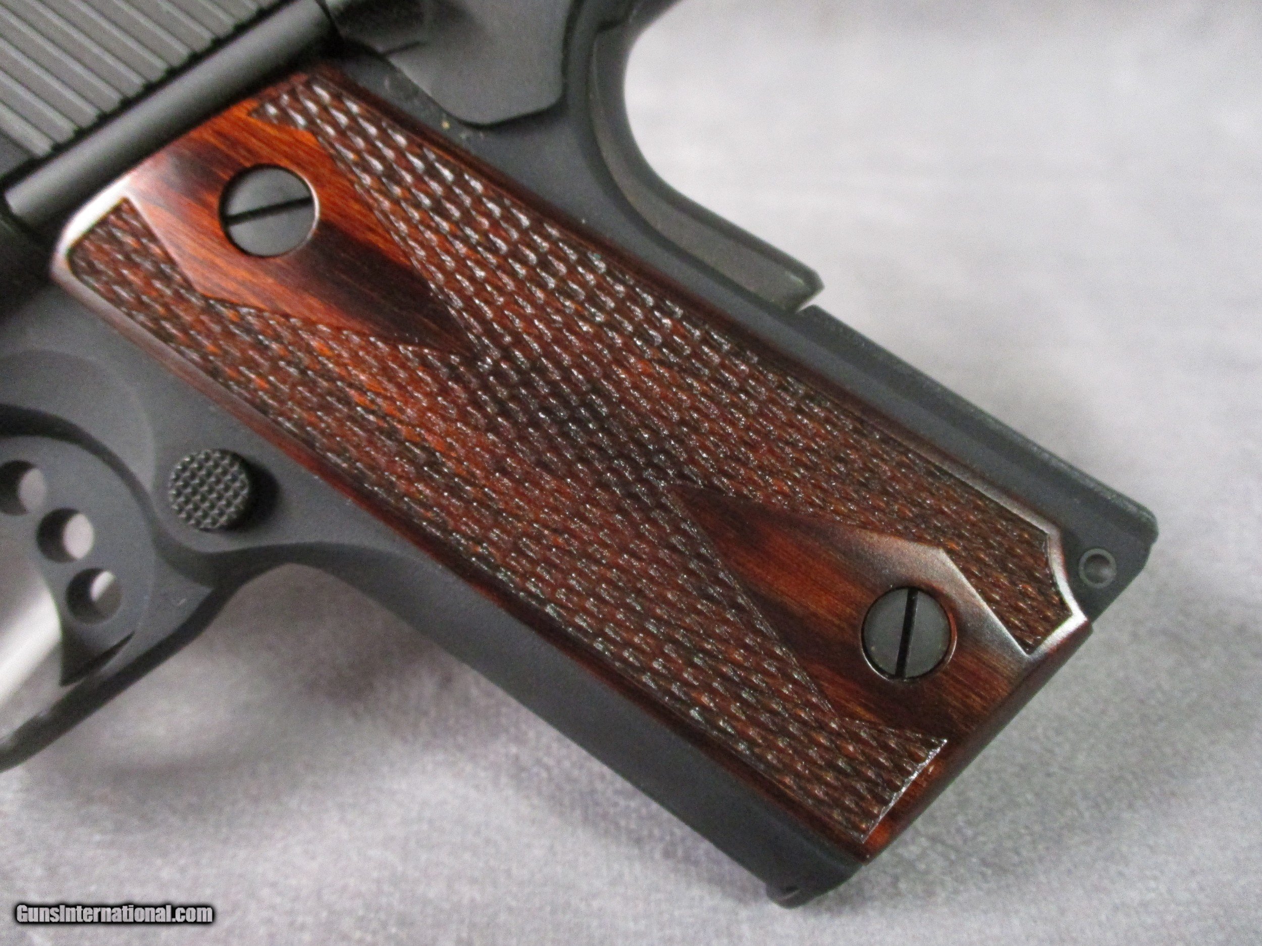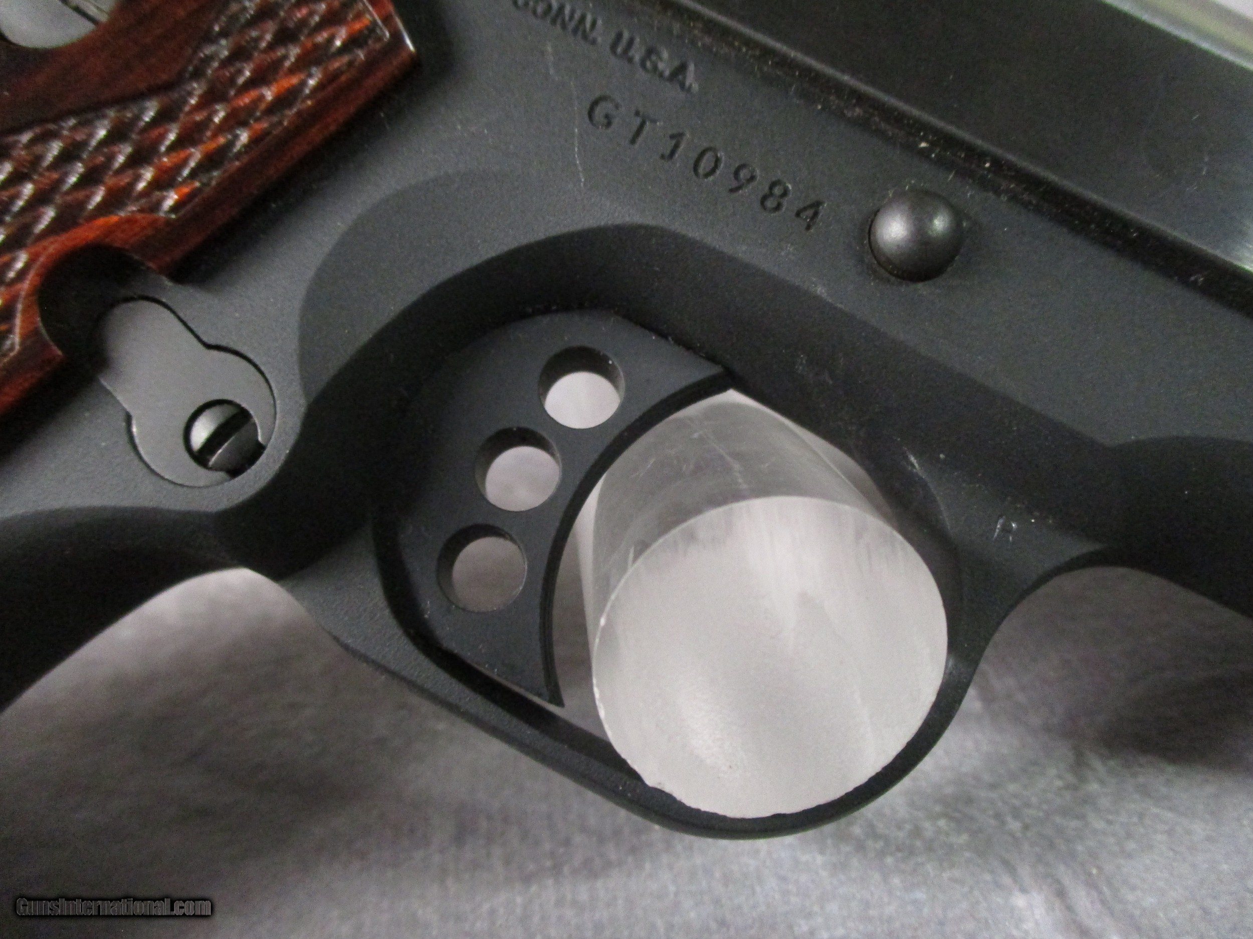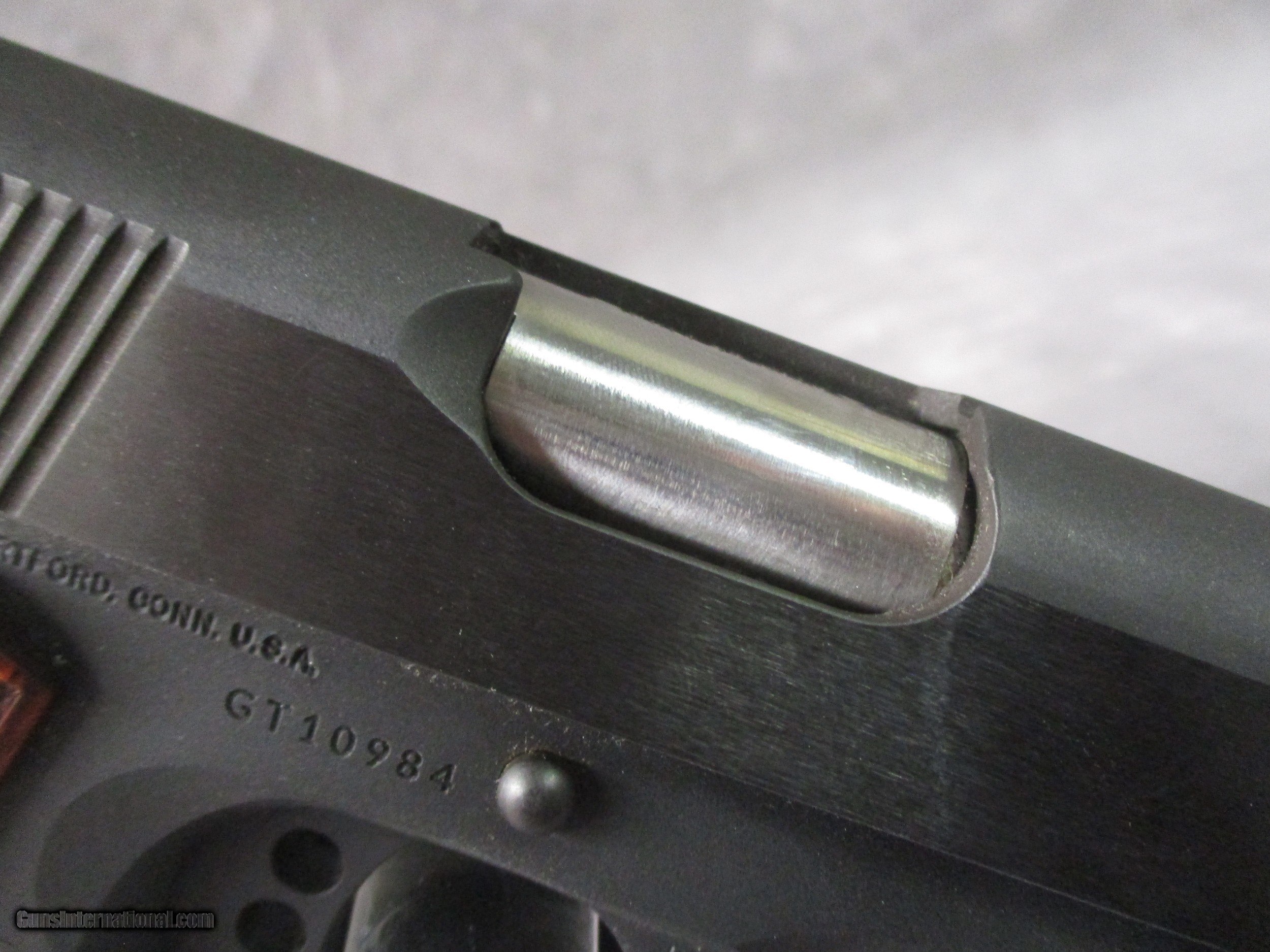 Description: The Colt New Agent was introduced in 2008 as a compact, personal defense version of the M1911A1, similar in concept to the Colt Defender. It combines a lightweight, aluminum alloy frame with a steel slide. It also features a skeletonized trigger, a skeletonized hammer, and trench sights. The trench sights are designed to be snag-free. This comes at a price – while the New Agent is extremely accurate at close range (where it is intended to be used), the trench sights do not work well at long distances. Again, this is intended to a point-blank self-defense gun, not a target pistol. The controls are also designed to be smaller than the usual to reduce the chance of snagging on an article of clothing. The bull barrel eliminates the need for a bushing and helps maintain accuracy. The Rosewood grips are thin in order to decrease the width of the pistol. This helps those with smaller hands to get a better grip on the pistol, a critical factor in self-defense shooting. The pistol visible in pictures above is pre-owned, but has not been fired since leaving the factory. It was made in 2013 according to the Colt ’s serial number database. The pistol comes with two magazines which hold 6 rounds apiece. The New Agent comes with its original Colt blue plastic case and the manual. It’s small size and lighter weight make the New Agent the ultimate micro .45. SOLD Handgun Caliber: .45 ACP (.45 Auto) Manufacturer: Colt's PT. F.A. Mfg. Co. Model: New Agent Lightweight Serial Number: GT10984 Bore: Rifled, 6 grooves Ejectors: Auto-ejection Condition: Like New in Box Barrel Type: Bushingless, tilting Action: Semi-Auto, Short recoil, Locked Breech Triggers: Skeletonized Trigger Stock: Checkered Rosewood, Thin double diamond grips Finish: Matte blue Weight: 24.5 oz. Sights: Snag free Trench sights, sight radius 5.4375 inches (138.11 mm) Manufacture Date: 2013 Case: Colt box |