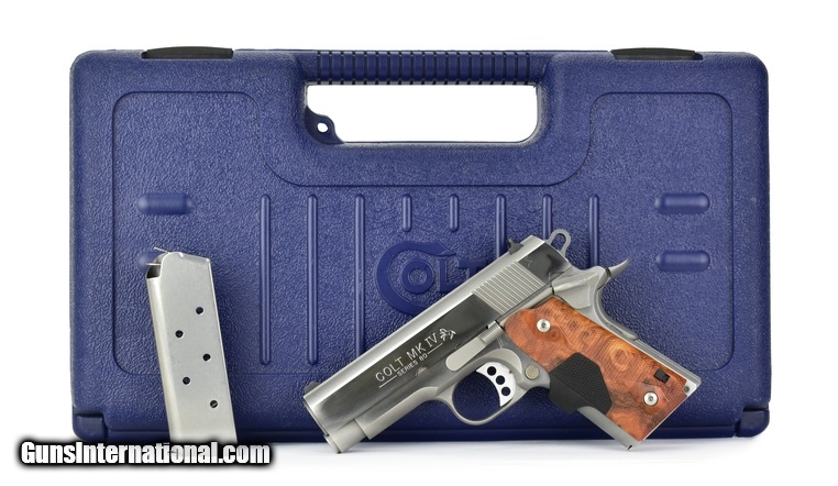 Colt Officers Model .45 ACP caliber pistol. Stainless Steel Officers model with laser grips, box and magazine. Excellent condition.
