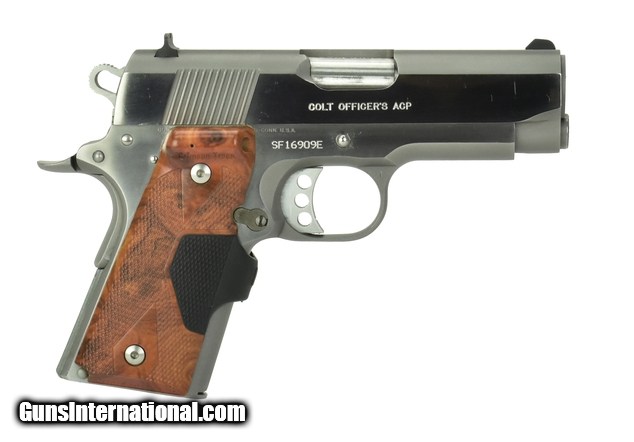 Description: Colt Officers Model .45 ACP caliber pistol. Stainless Steel Officers model with laser grips, box and magazine. Excellent condition.