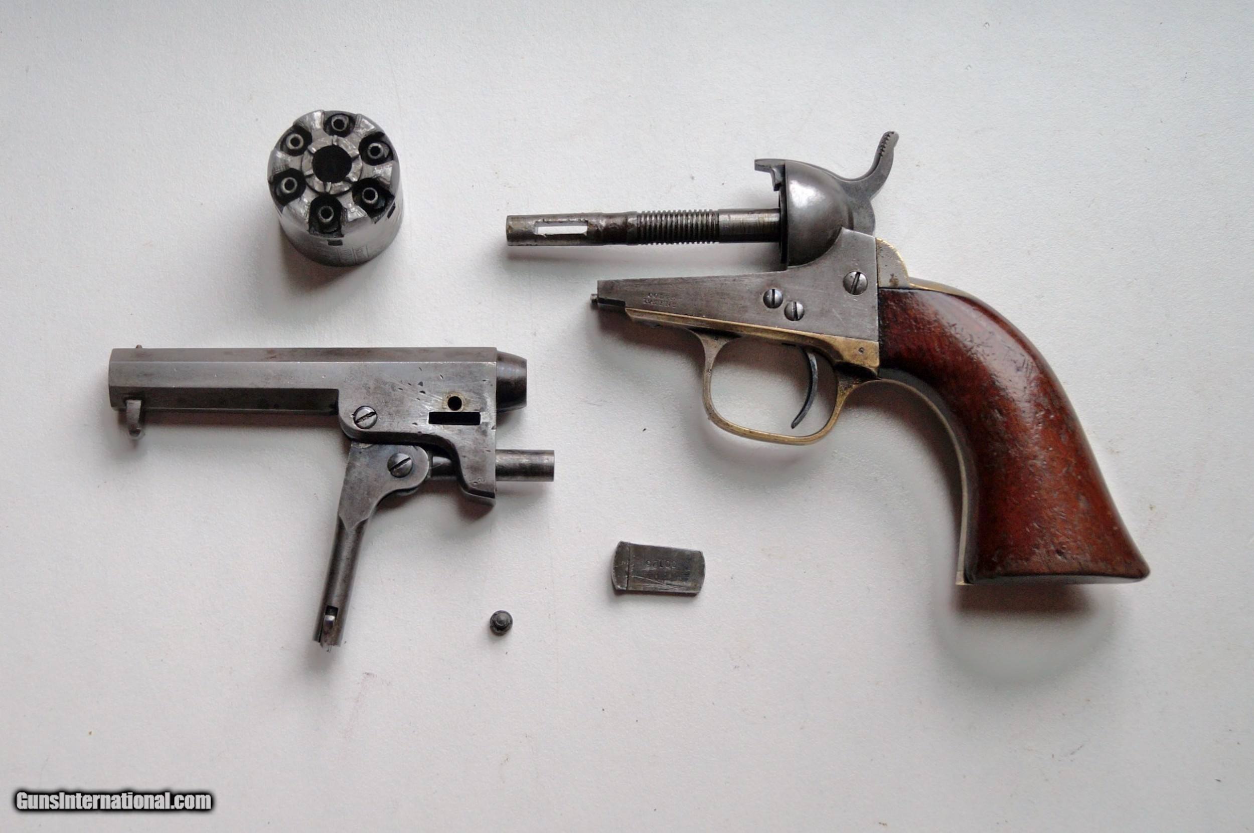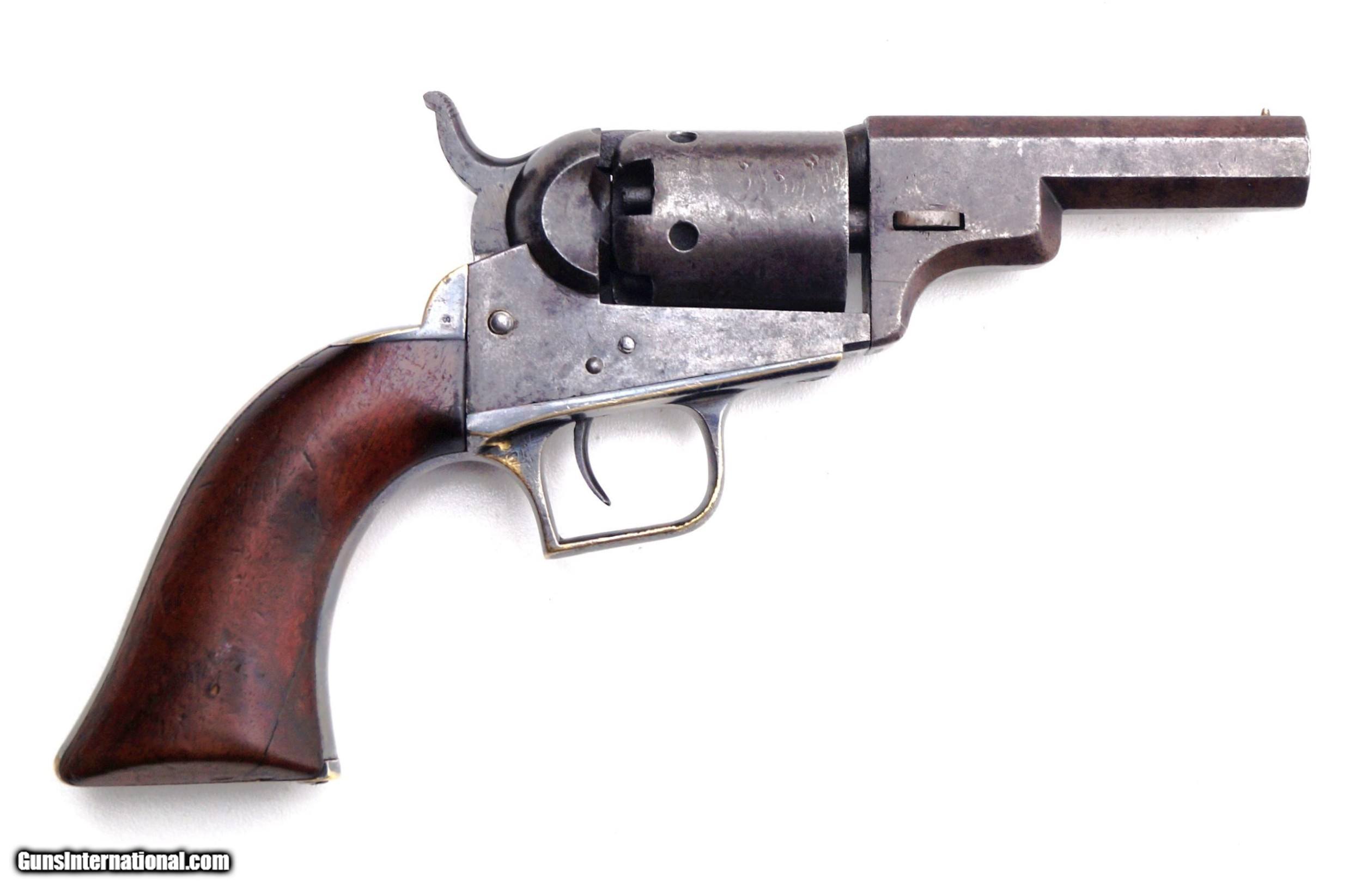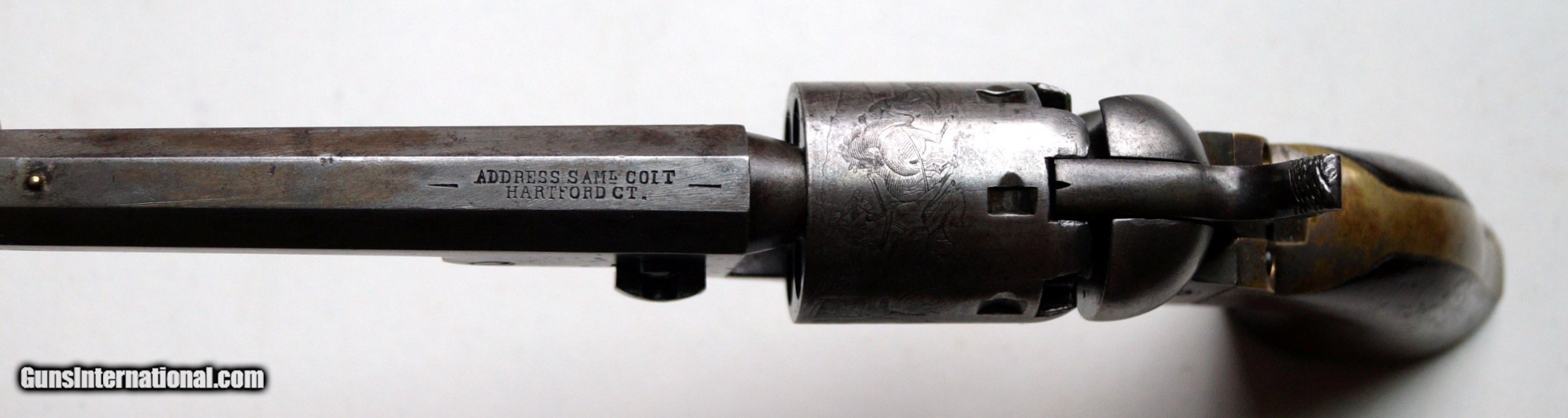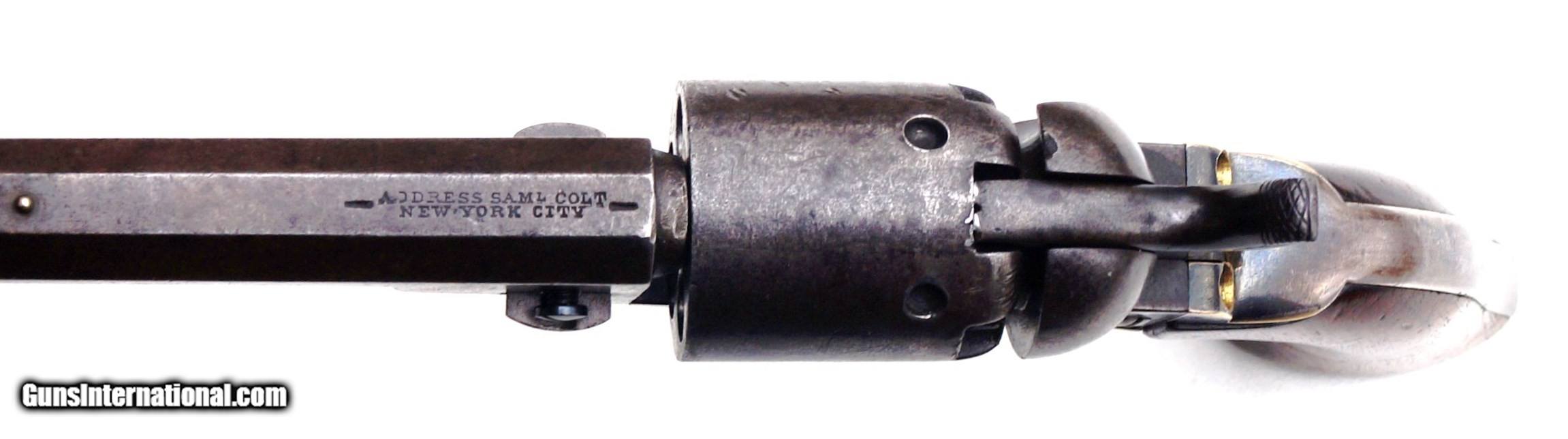 Description: THIS IS A COLT 1848 BABY DRAGOON (#8860) .31 CAL AND A COLT 1849 POCKET MODEL (#46426) .31 CAL. BOTH GUNS ARE IN GOOD CONDITION. ALL ORIGINAL, NUMBER MATCHING (EVEN THE LOCKING WEDGES), GOOD BORES AND GRIPS, MECHANICALLY CORRECT (THE GUNS WILL SHOOT).THE PAIR OF COLTS COMES WITH AN ORIGINAL DISPLAY CASE WHICH CONTAINS, AN ORIGINAL POWDER FLASK, AN ORIGINAL BRASS AMMO MOLD, ORIGINAL PERCUSSION CAPS WITH CAN. A BEAUTFUL PAIR OF ANTIQUE COLT PERCUSSION PISTOLS. SOLD Antique: Yes |