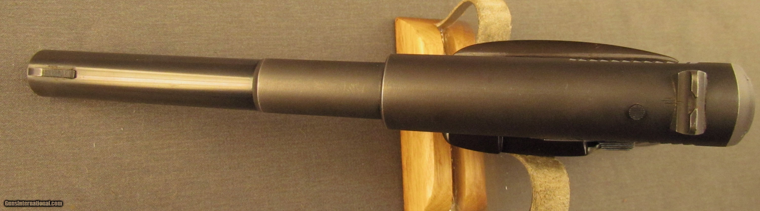 Description: Serial #6363-C, .22 LR, 4 1/2" barrel with an excellent, bright bore. This is a 1950 made pistol that has retained 95-97% of the original blue finish with some traces of silvering at the muzzle and other high edges as well as a handful of minor surface scratches along the sides of the barrel. The checkered dark brown resin grips are in fine-excellent condition with a few minor handling marks and blemishes on either side and little flattening of the points. The pistol comes with a single original magazine and is in excellent condition overall; a great little rimfire Colt auto. FFL or C&R SOLD Curio/Relic: Yes Manufacturer: Colt Model: Challenger Serial Number: 6363-C Caliber Info: .22LR Gauge Info: .22LR |