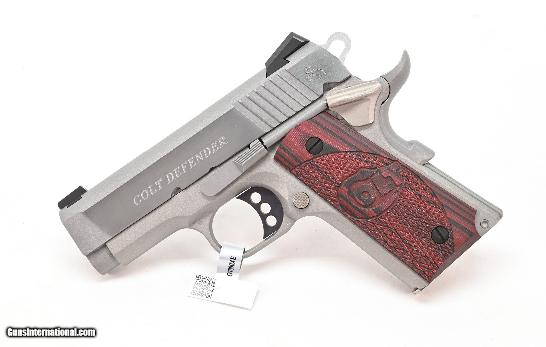 Description: Colt Defender O7000XE Compact 1911 45 ACP Stainless/Cerakote. BRAND NEW AVAILABLE FOR PURCHASE AT OUR ON-LINE STORE The Colt Defender pistol is a carry-ready 1911 in a compact size. The Lightweight Aluminum Frame is finished in a Matte Stainless Steel finish, topped with a Forged Stainless Steel slide for a pistol that looks as good as it conceals. Tactile G10 Grips and Upswept Beavertail Grip Safety make this small pistol very comfortable to shoot. This Ad Uses Stock Images. The Serial Number For This Firearm Is: DF004127 SPECIFICATIONS