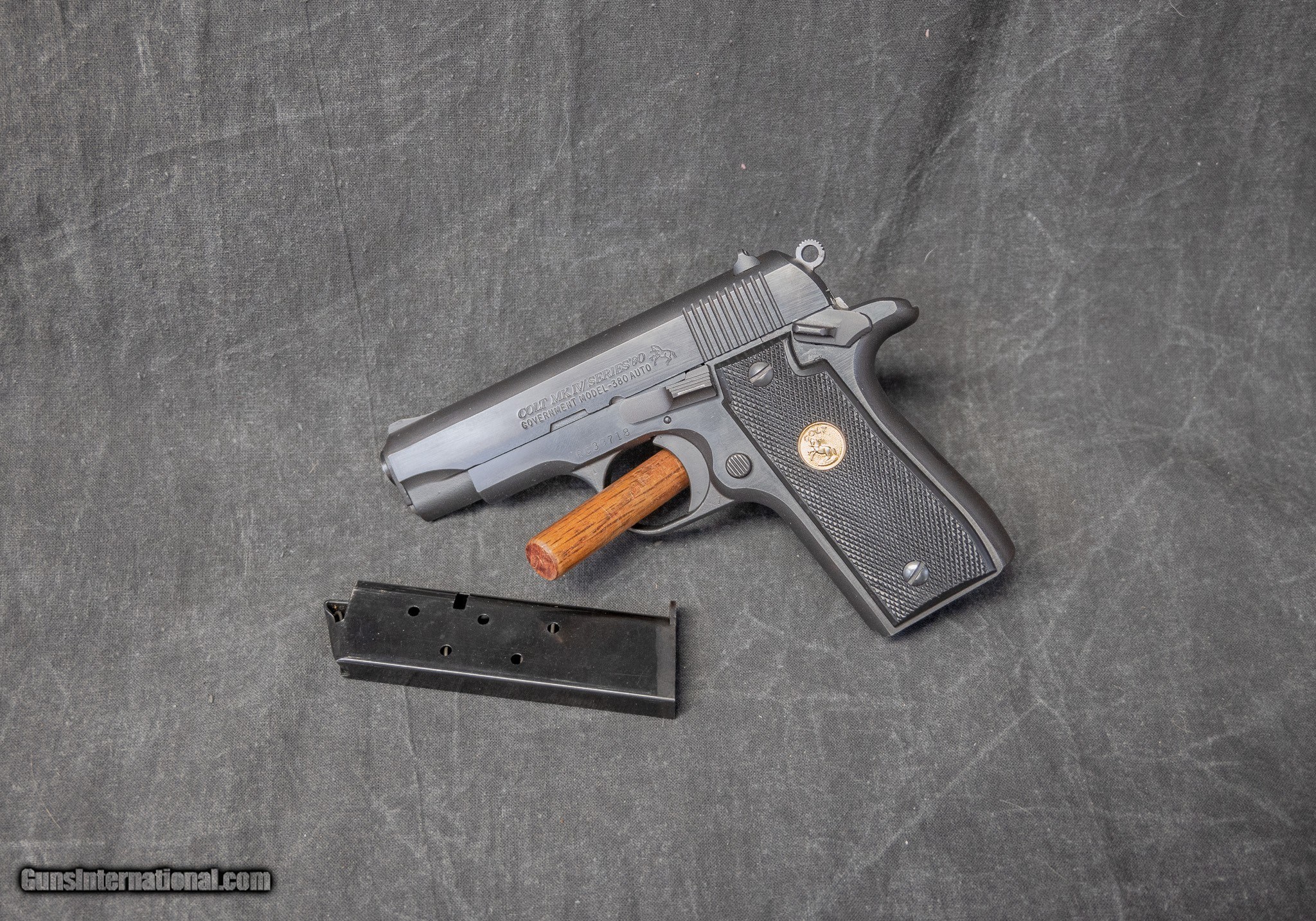 Description: Specifications Maker: COLT Model: .380 GOVERNMENT MODEL MK IV Gauge/Caliber: .380 ACP Chambers: 3.1/4" Weight:2 0 ozs. Special Features: SEMI-AUTOMATIC SINGLE ACTION BLUED FINISH 1-7 ROUND MAGAZINE FIXED SIGHTS COMPOSITE GRIPS W/GOLD COLT MEDALIONS CONDITION: VERY GOOD TO EXCELLENT. Circa: 1985/ SERIAL # RC39718 Number: C9628 SOLD |