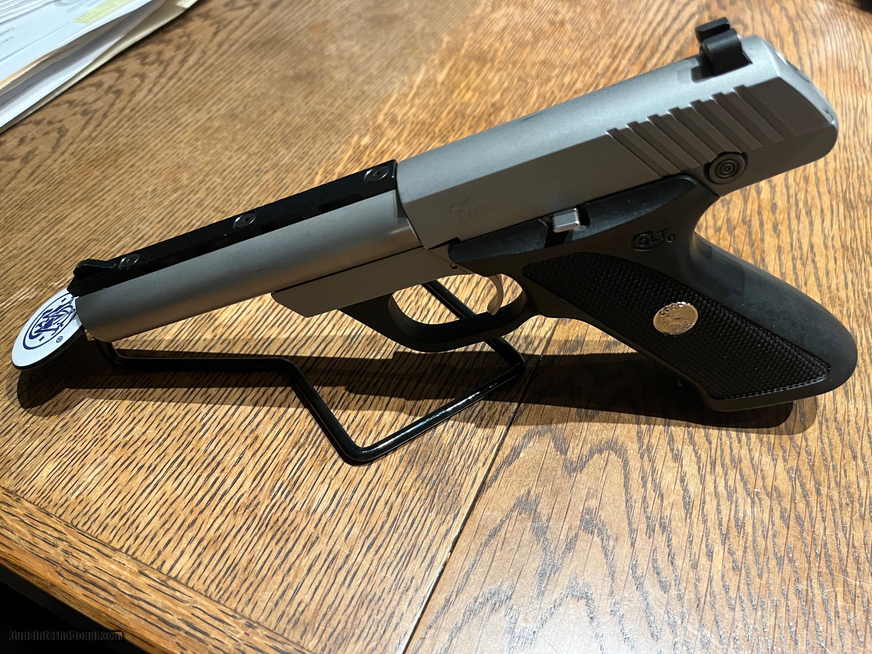 Description: PRICE REDUCED Colt semi-auto pistol stainless steel, .22 LR with 2 10-round magazines in Colt case with paperwork. Easy to operate for ladies or small hands. Has a ventilated rib on the 4 1/2" barrel. Made in the 1990's. Weight 33 1/2 oz. Price includes shipping to lower 47 states. Not for Ca. SOLD Handgun Caliber: .22 Long Rifle Condition: Very Good Item Location: Ca |