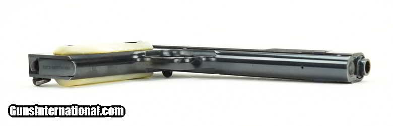 Description: Colt 1902 Auto .38 ACP caliber pistol. Beautiful 1902 Military model shipped approximately November 1903. Excellent bore. Action works perfectly. Gun has factory deep dish medallion pearl grips in excellent condition. Gun has approximately 95% original blue. Slide has the desirable knurled front. Hammer has 100% case colors. This is a very fine 1902 Military with really good medallion pearl grips! SOLD Curio/Relic: Yes |