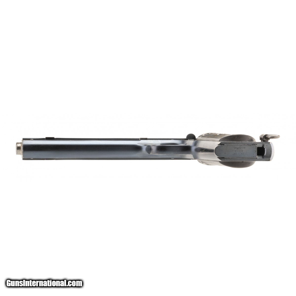 Description: " This 38 Rimless Smokeless Colt 1902 Military Model is circa 1920. It features the rear slide serrations and spur hammer. The 6"" barrel has an excellent bore with bright, strong rifling. The left side of the slide is stamped PATENTED over APR. 20. 1897. SEPT. 9. 1902 with COLT'S PT.F.A.MFG.CO. over HARTFORD, CT. U.S.A with the Colt rampant horse logo at the rear. The right side is stamed AUTOMATIC COLT over CALIBER 38 RIMLESS SMOKELESS. The gun retains approx. 98% blue overall. The hammer has visible case colors. The ecellent correct 8 shot magazine is marked on the base MIL over COLT over 38 CAL. The checkered hard rubber grips with the rampant colt and COLT are excellent with no chips or cracks. The lanyard loop is present. The action functions correctly. This Colt 1902 Military Model pistol is ready for the finest colletion. It would never need upgrading. SOLD Curio/Relic: Yes |