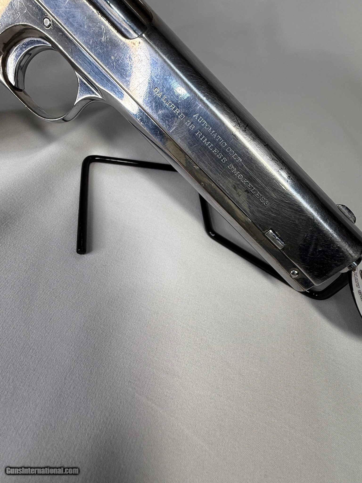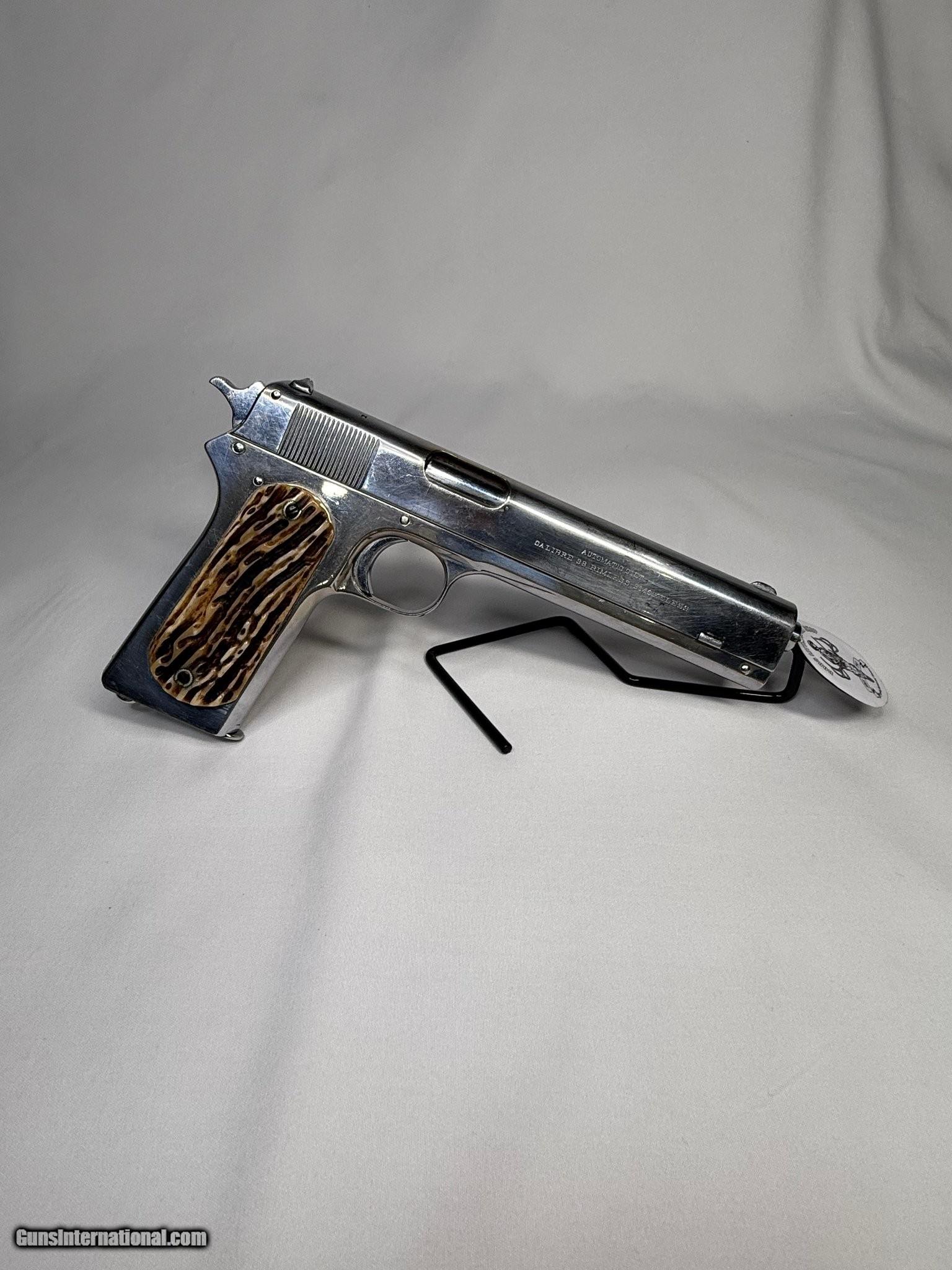 Description: Guns Listing ID: 572580 Stainless Steel with faux stag grips. 1902 Military, original Colt. Stamped Patented APR 20 1897 - SEPT 9 1902. Comes with Soft case and mag SOLD Manufacturer: COLT Model: 1902 Military Caliber Info: .38 ACP Condition: Used - Non-Certified Barrels: 6" BARREL Action: SEMI AUTOMATIC Finish: silver chrome |