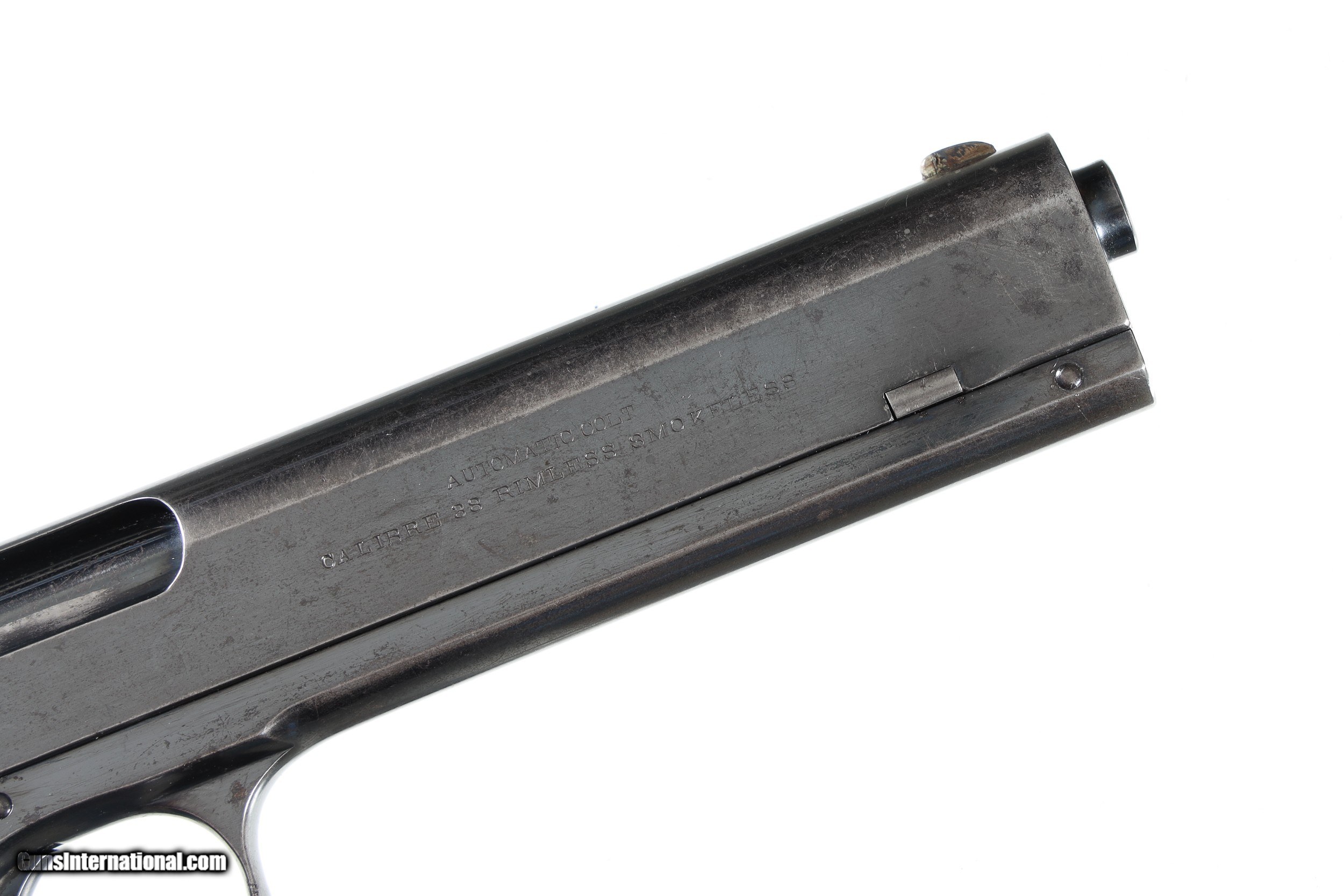 Description: Very good plus overall condition with thinning original blue. Lanyard loop absent (ground off). Manufactured in 1915. • Free Shipping, No Credit Card Fees. • Lay-a-way available for this firearm. • 1/3 Down, a 1/3 in 30 Days 1/3 in 60 Days. SOLD Curio/Relic: Yes Manufacturer: Colt Model: 1902 Serial Number: 38245 Barrel Length: 5 3/4 Action: Pistol |