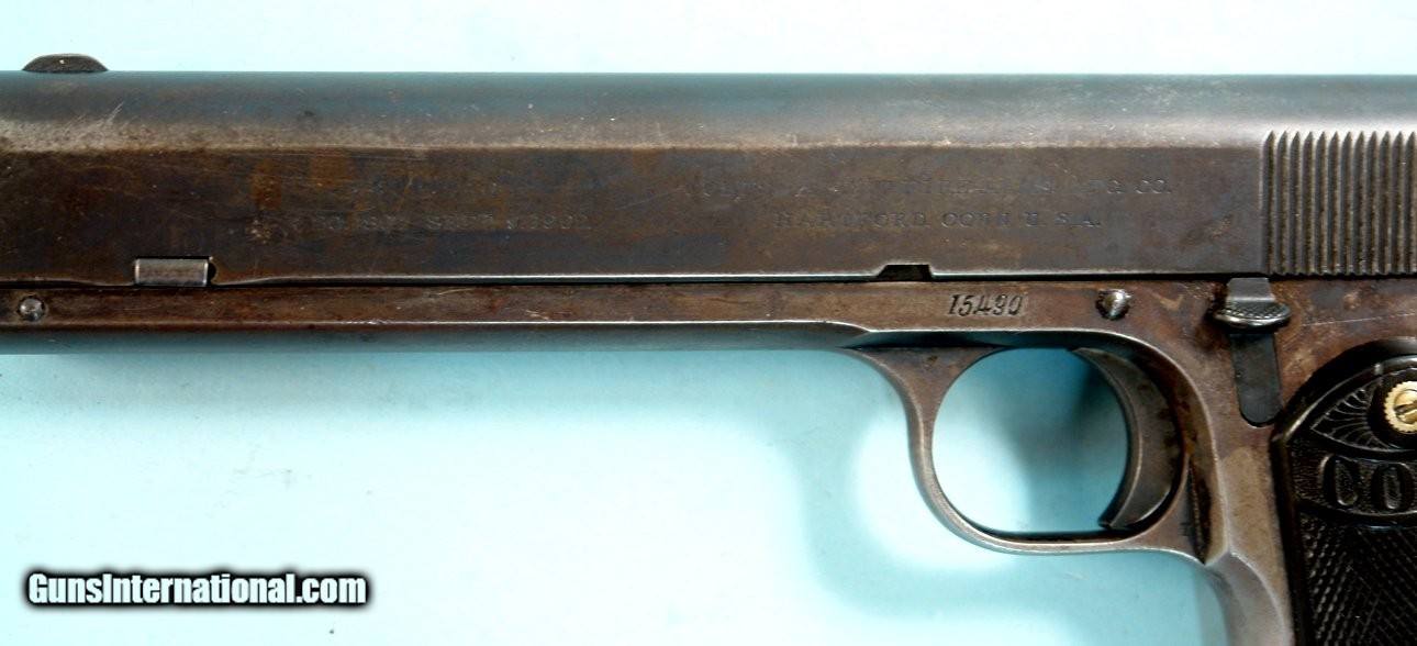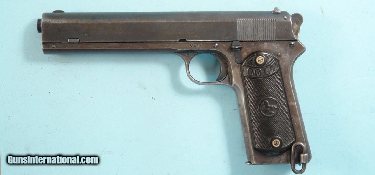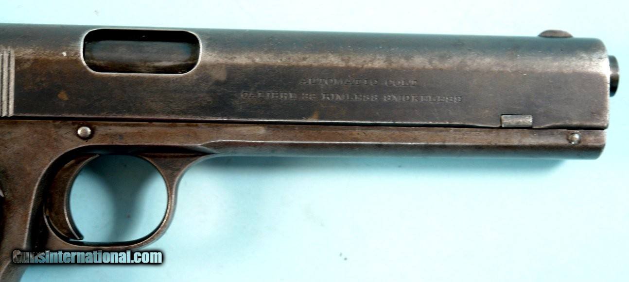 COLT MODEL 1902 MILITARY MODEL SEMI-AUTO .38 RIMLESS SMOKELESS CAL. PISTOL CIRCA 1907.