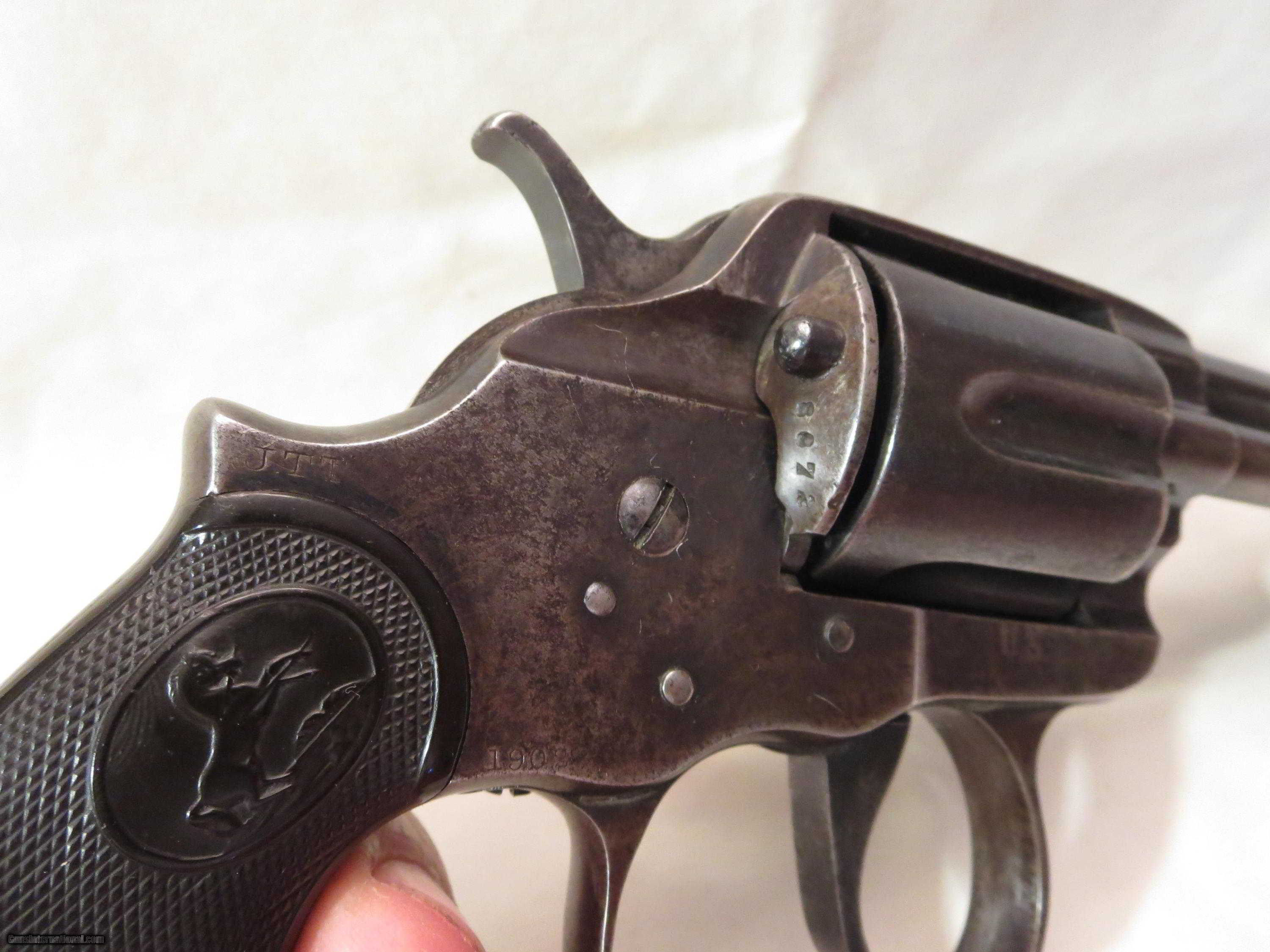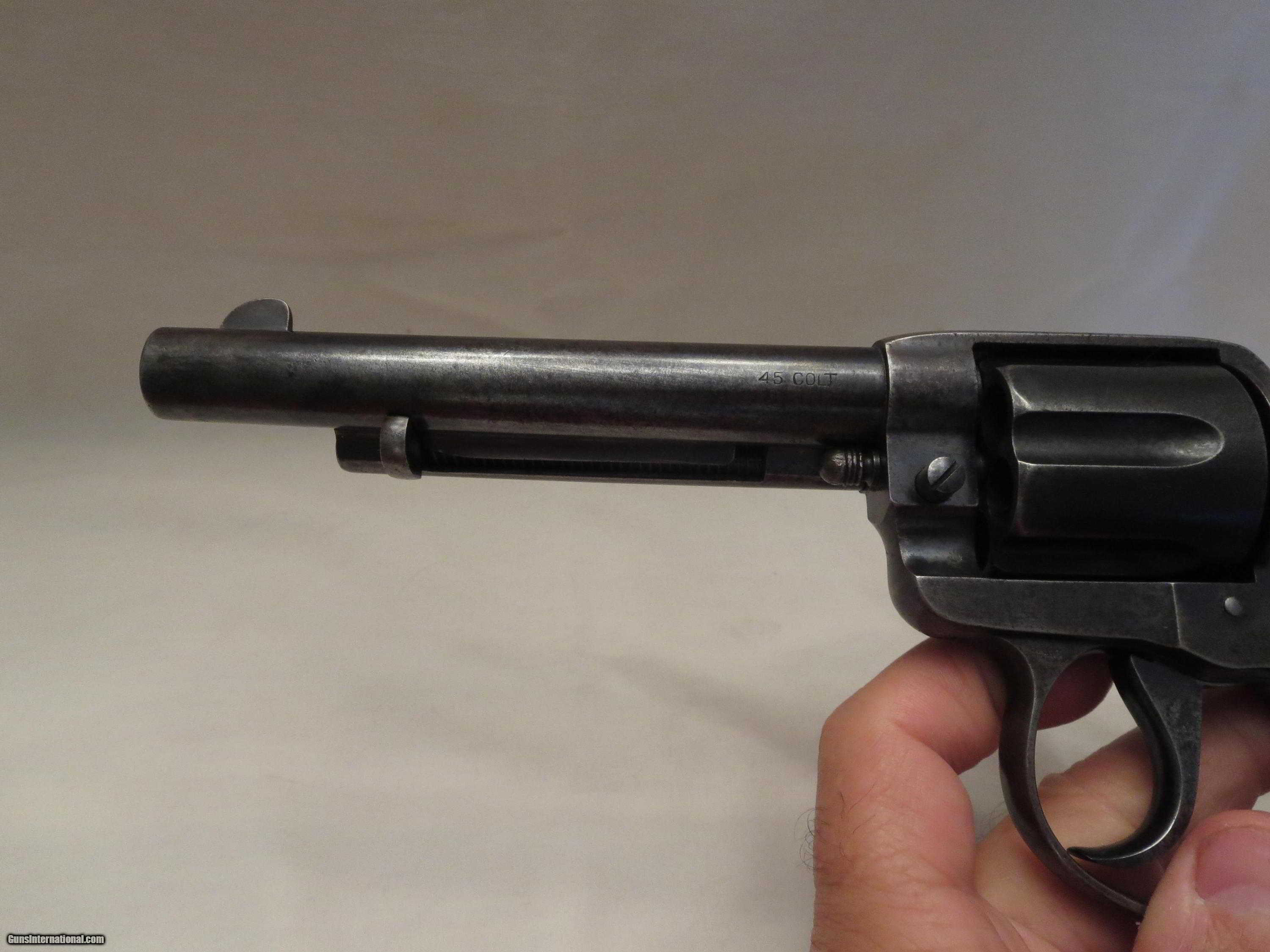 Description: "SALE PENDING" Super Price Reduction. Colt Constabulary. An excellent example of the scarce Colt Model 1878/1902 double action revolver. Comes with beautiful handmade walnut wood presentation case. This model is also referred to as the "Philippine Constabulary". See Wikipedia description below. This 6 shot revolver has a 6" barrel and is chambered for the 45 Long Colt cartridge. The bore is slightly frosted with sharp rifling and will clean up better than photos depict. Inspectors marks(RAC) are several places on pistol. Markings on the right side are 1902 and US. The serial number is 48072. Cylinder # matches frame. Excellent aging with patina finish and original blueing in concealed areas Only example that I have seen with the Colt logo on left grip frame. Most other examples have been through some sort of arsenal rework or polish that weakens stampings. Overall condition is very nice. I have fired this pistol and it functions flawlessly. The design allows some cylinder play until trigger is pulled. Then cylinder rotates timely and locks up tight during firing stage. A box of Armscor(50 rds - 6 spent) 45 LC ammo can be purchased separately. Additional photos available upon request. Please email me for any other questions you might have. NEW LAYAWAY PLANS AVAILABLE. Can email simple/honest options. WIKIPEDIA: The Colt M1878 is a DA revolver that was manufactured by Colt from 1878 to 1907. It is often referred to as the "Frontier" or the "Double Action Army" revolver. A total of 51,210 Model 1878 revolvers were manufactured from 1878 to 1907, including 4,600 for the US Ordnance Department. These are known as the "Philippine Constabulary" or "Alaskan" models. The Model 1878 had a larger frame, and is therefore sometimes referred to as the "large frame" double-action revolver. The Model 1878 was considered a more robust and reliable design than the Model 1877. In 1902, 4,600 Model 1878 revolvers were produced for a U.S. Army contract. They were intended to equip the Philippine Constabulary under Brigadier General Henry T. Allen in the Philippine Insurrection. These revolvers had a 6-inch barrel, a hard rubber grip, and were chambered for the .45 Colt round. They had a strengthened main spring and a longer trigger to give the user more leverage, resulting a larger trigger guard. The strengthened main spring was necessary to fire the .45 Government rounds with a less sensitive primer compared to the civil .45 LC ammunition. Many people have incorrectly assumed that this was to allow the revolver to be operated while wearing gloves , so "Alaskan Model" is a misnomer. Will need to be shipped to FFL via insured means. Shipping to Alaska and Hawaii will be extra. No international sales. No sales to CA. Shipping to FFL in your area preferred. SOLD Curio/Relic: Yes Manufacturer: Colt Model: 1878(1902) Phillipines Constabulary Serial Number: 48072 Caliber Info: 45 LC Condition: Good/Very Good Metal Condition: Good Bore Condition: Slight frosting Sights: Factory Manufacture Date: 1901 Case: Walnut Presentaion |