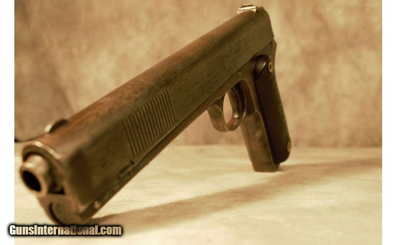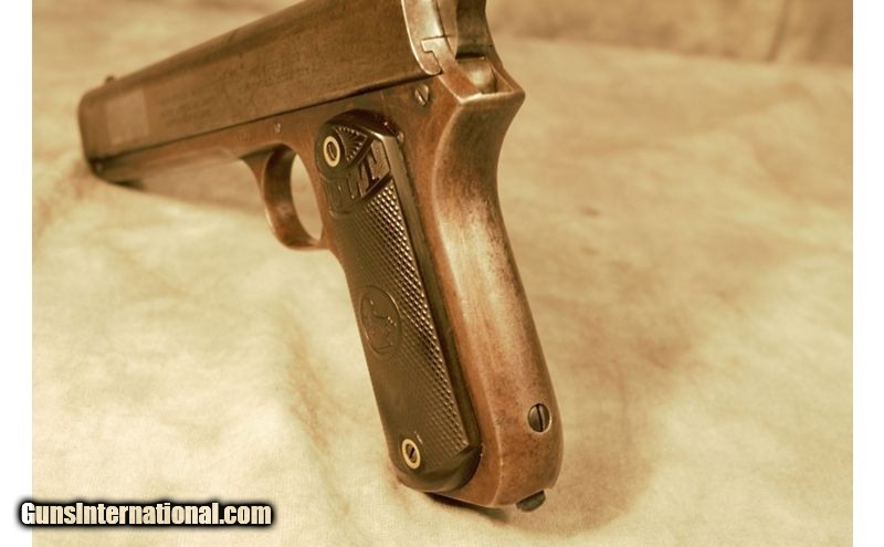 Description: The Model 1902 is a semi-automatic pistol developed by famous American firearms designer John Browning and produced by the Colt's Patent Firearms Manufacturing Company in the early 20th century. Available from 1902 to 1907, the Sporting Model 1902 variant was slightly lighter and smaller than the military version, with a more rounded grip frame. In 6 years of production a total of approximately 6927 Sporting versions were manufactured. In the period of 1902–1907 the Sporting Models still outsold the military models, 6,927 to 5,500 and when production of the Sporting Model ended in 1907 .38 Rimless Smokeless SOLD Curio/Relic: Yes Metal Condition: The metal is in fair condition most of the bluing is gone and has started to oxidize brown but that is common given the age Barrels: 6 Sights: Iron sights Item Location: Chesterfield, MI |