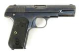 Colt 1903 .32 ACP caliber pistol. Manufactured in 1907. Bore is very good with strong rifling and minor frosting. Metal has about 75-80% bluing with a gray-brown patina. Grips are very good. Very good condition overall.