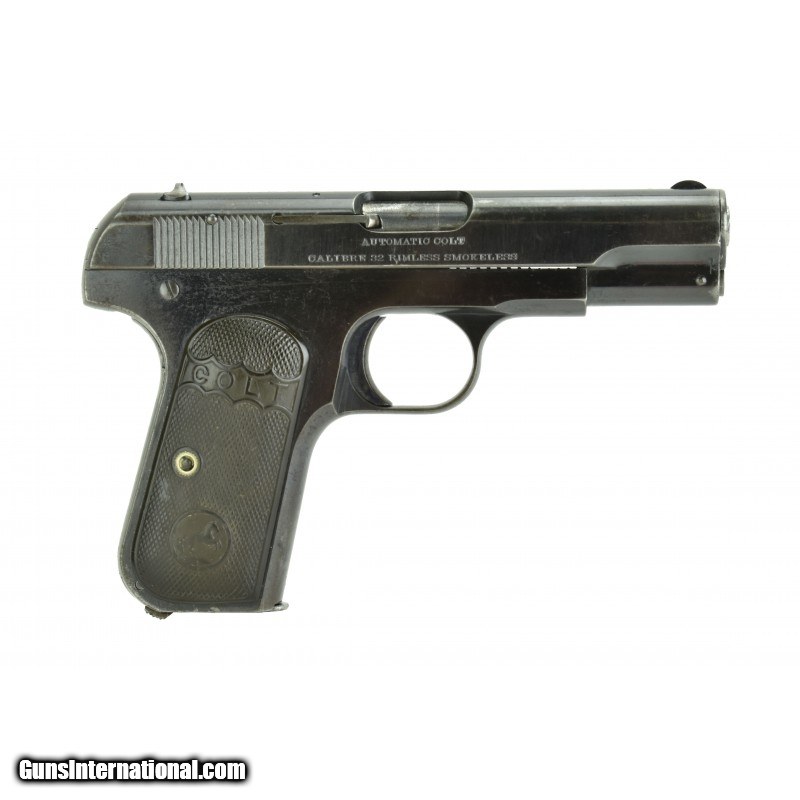 Description: "Colt 1903 .32 ACP caliber pistol. Manufactured approximately 1910. Bore has strong rifling with pitting. Early style model with bushing. Good-very good overall condition. SOLD Curio/Relic: Yes |