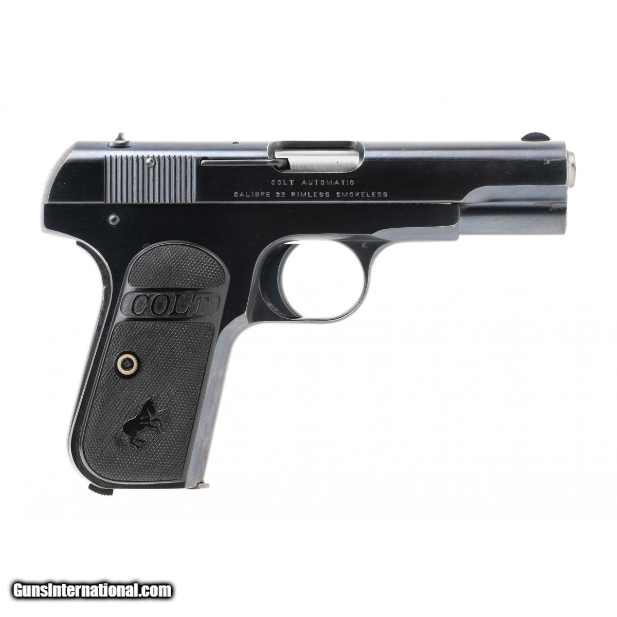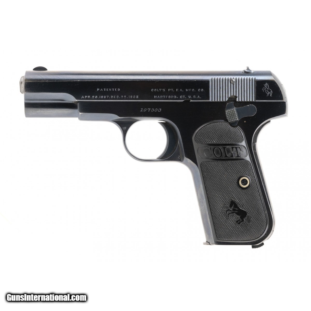 Description: " Colt hammerless pocket pistol with 4"" barrel manufactured in 1916. This pistol has 98% of its original blue. The grips are in perfect condition. Overall an excellent 1903! SOLD Curio/Relic: Yes |